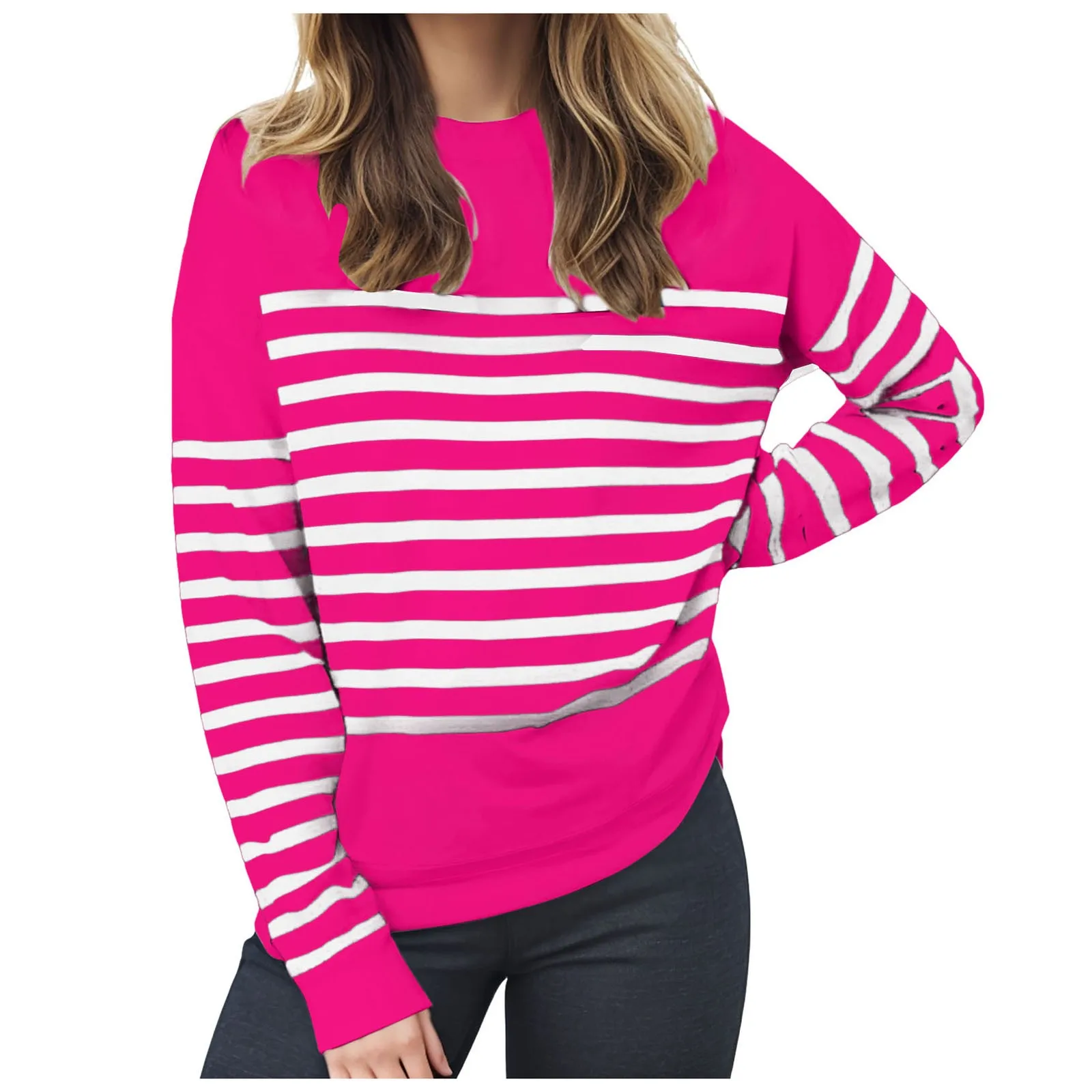 Women’s Crew Neck Long Sleeve Tops Lightweight Fashion Sweatshirts 2024