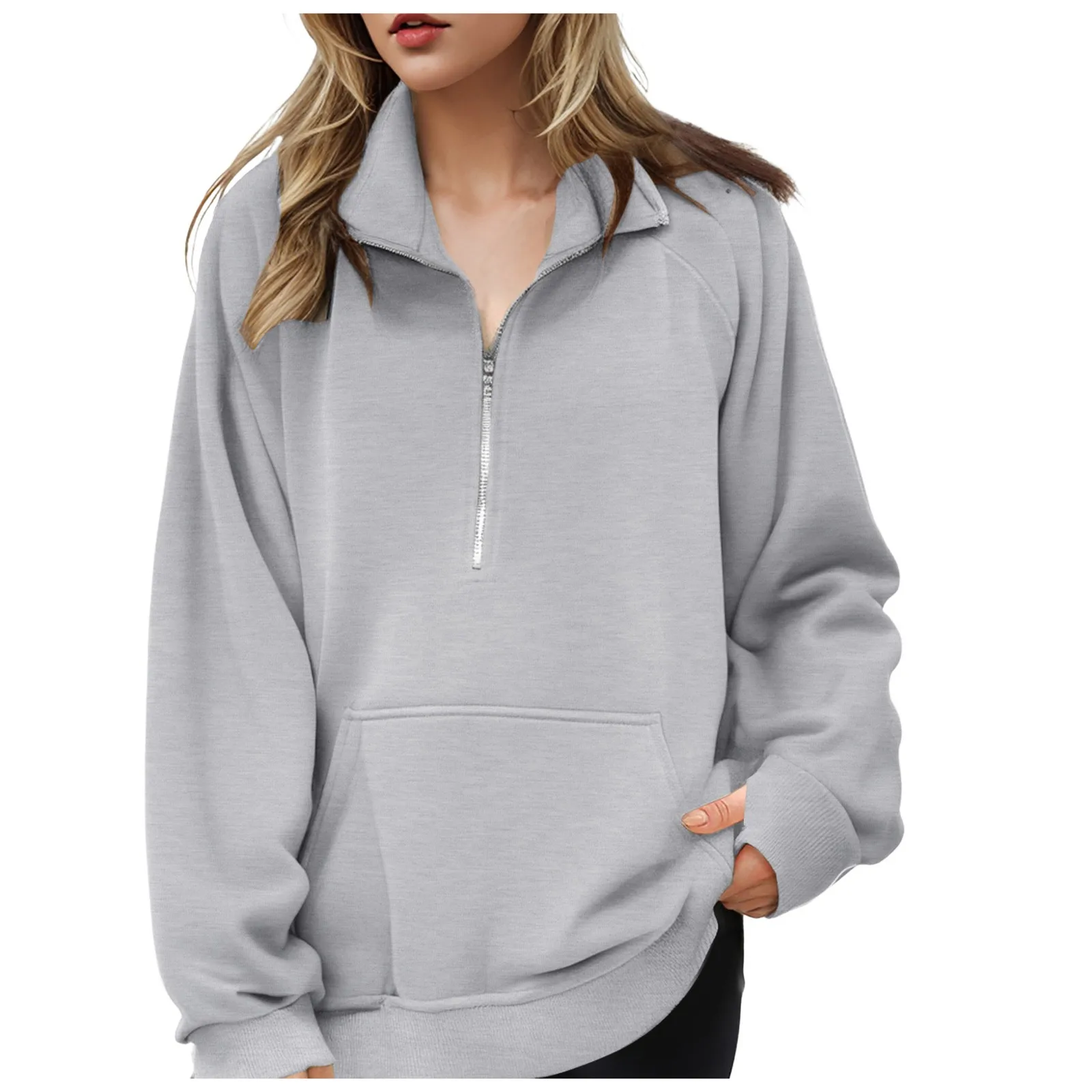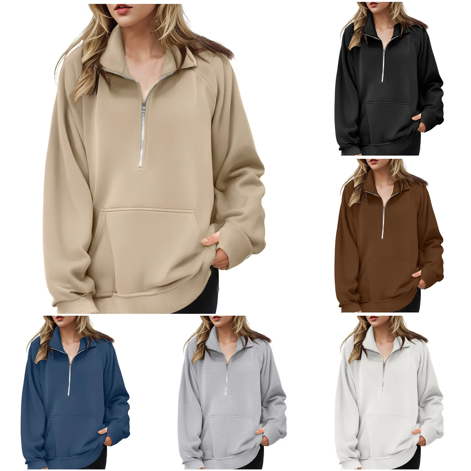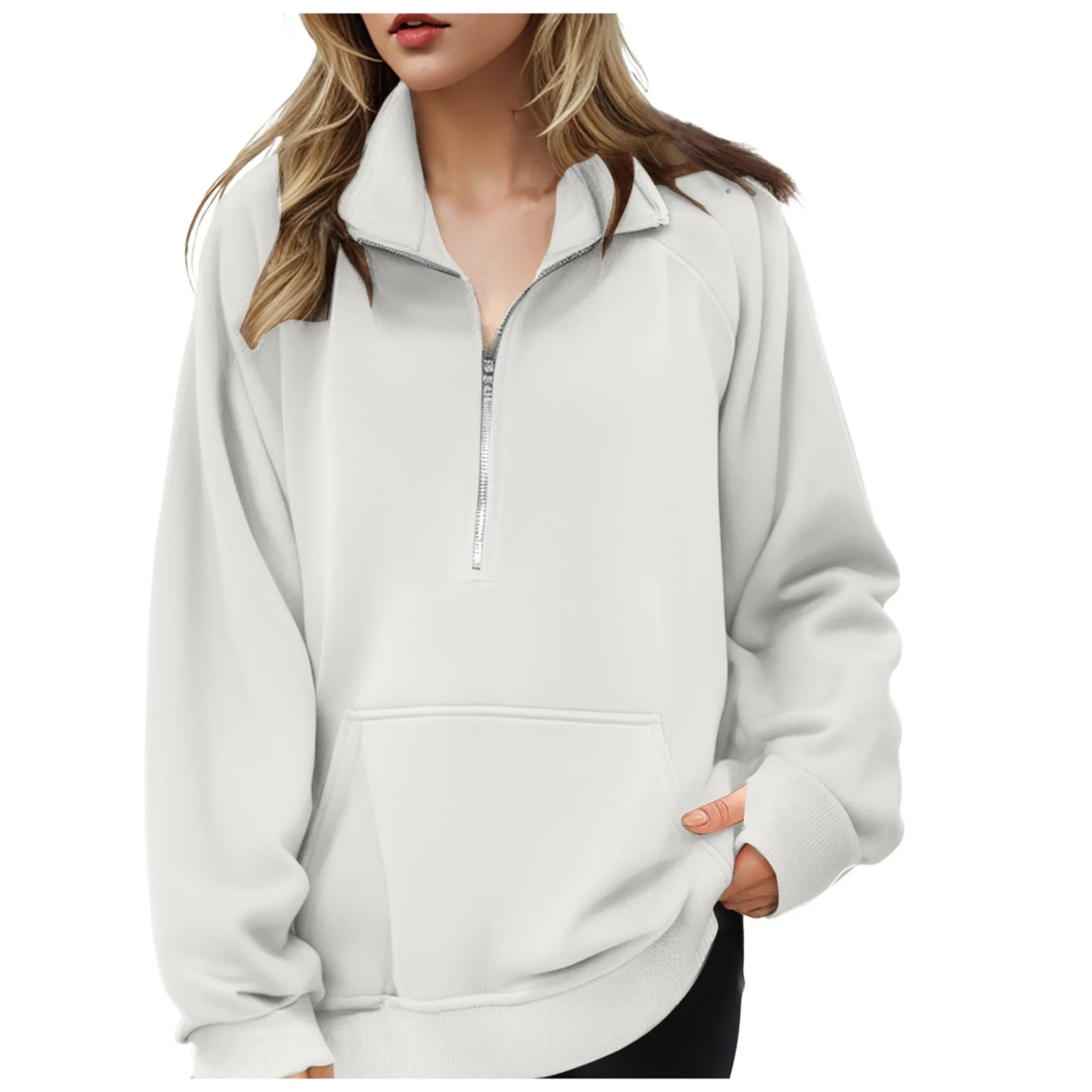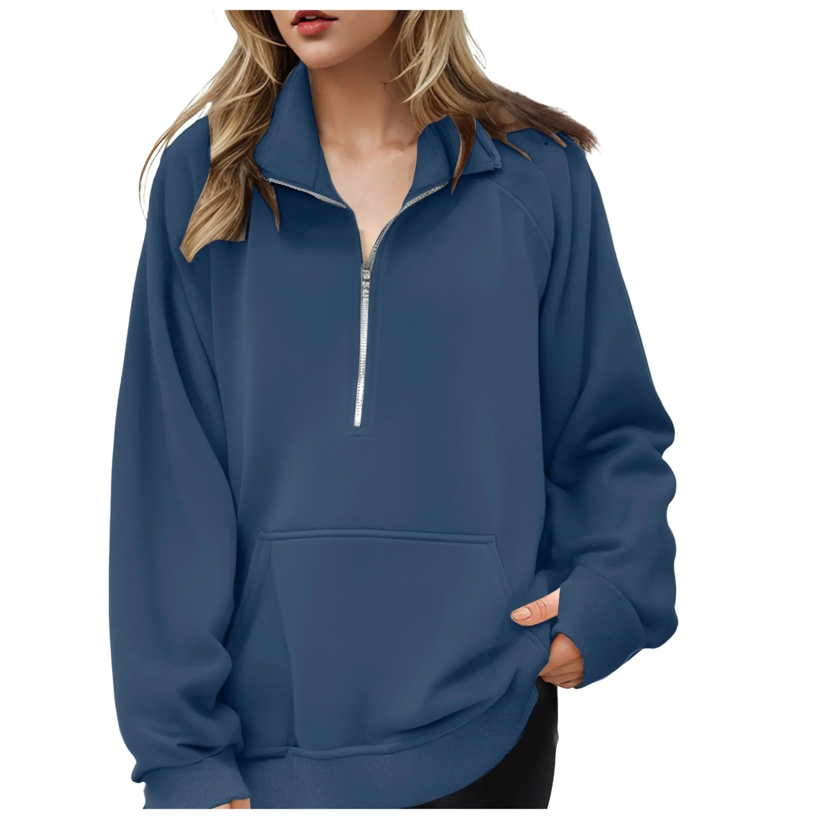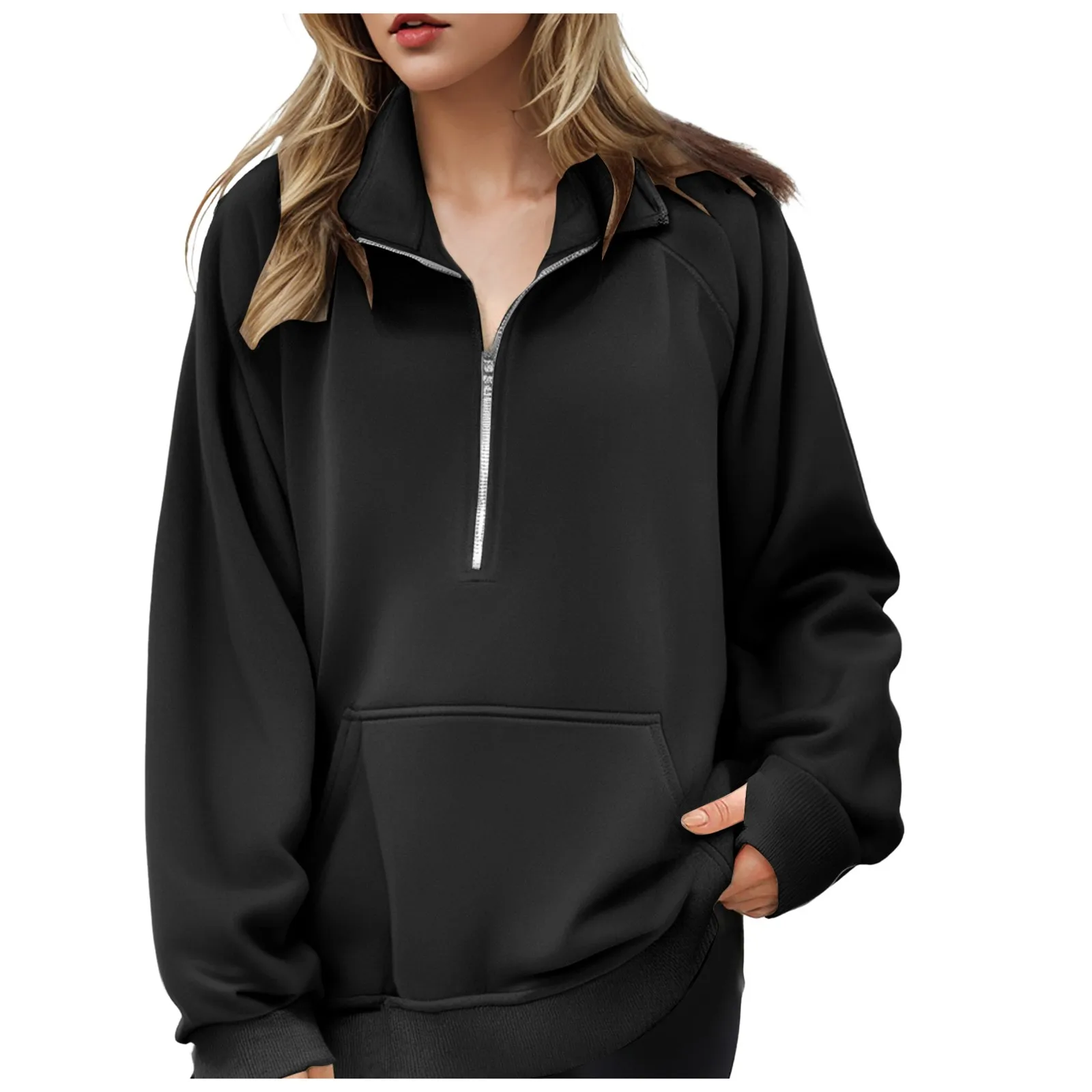 Womens Quarter Zip Sweatshirt Pullover Oversized Hoodie Sweater Fall Clothing Winter Clothing Thumbholes 2024