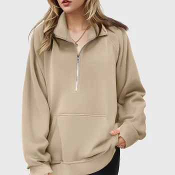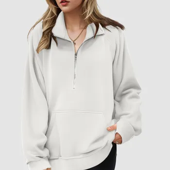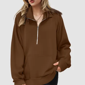 Womens Quarter Zip Sweatshirt Pullover Oversized Hoodie Sweater Fall Clothing Winter Clothing Thumbholes 2024