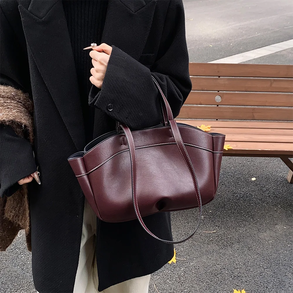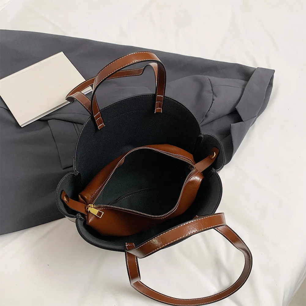Female Solid Casual Underarm Bag Large Capacity Briefcase Bags Versatile Tote Bags Ladies Work Bag with Matching Clutch