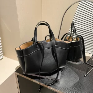 3. Convenient Pocket Design: This trendy briefcase bag features a main compartment and a detachable small pouch, providing versatile storage options. The thoughtful pocket design ensures easy access and organization for all your belongings.
