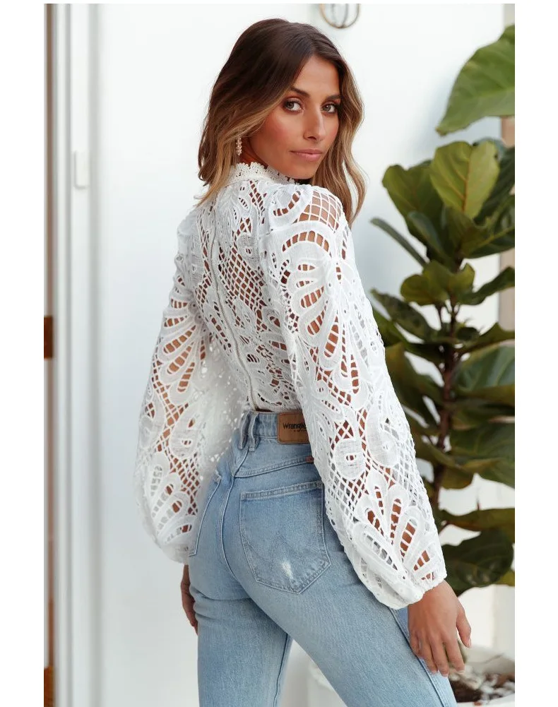 Women’s Long Sleeve Lace Crochet Hollow Out Turtleneck Tops.