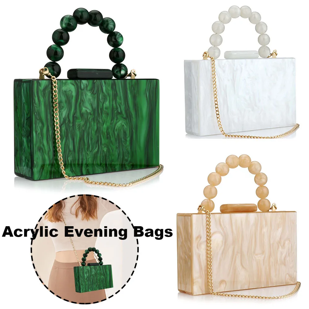 Acrylic Purses Evening Clutch Bag Marbling Handbags for Women Cross Body Bag with Pearl Chain Formal Wedding Prom Party