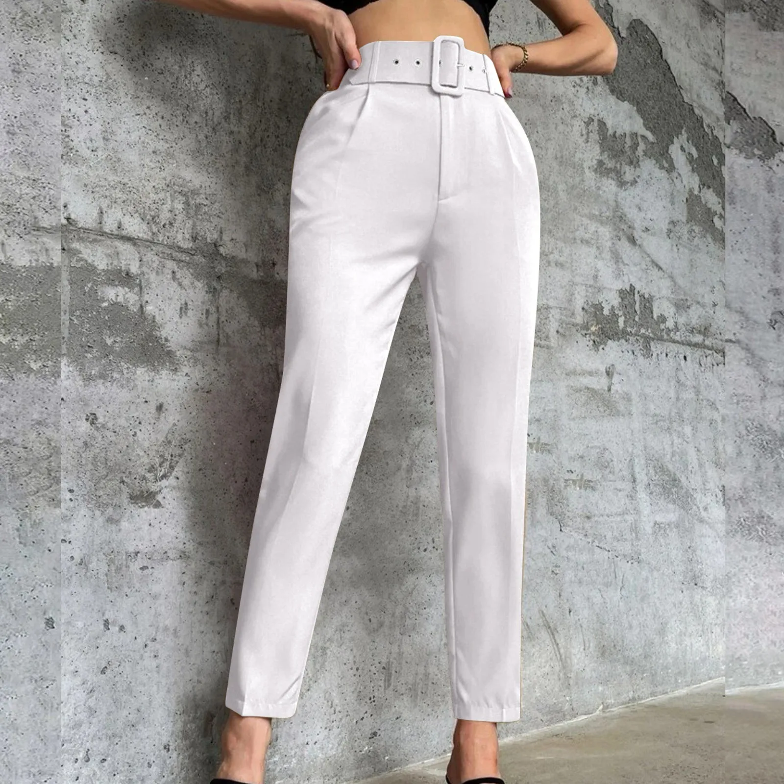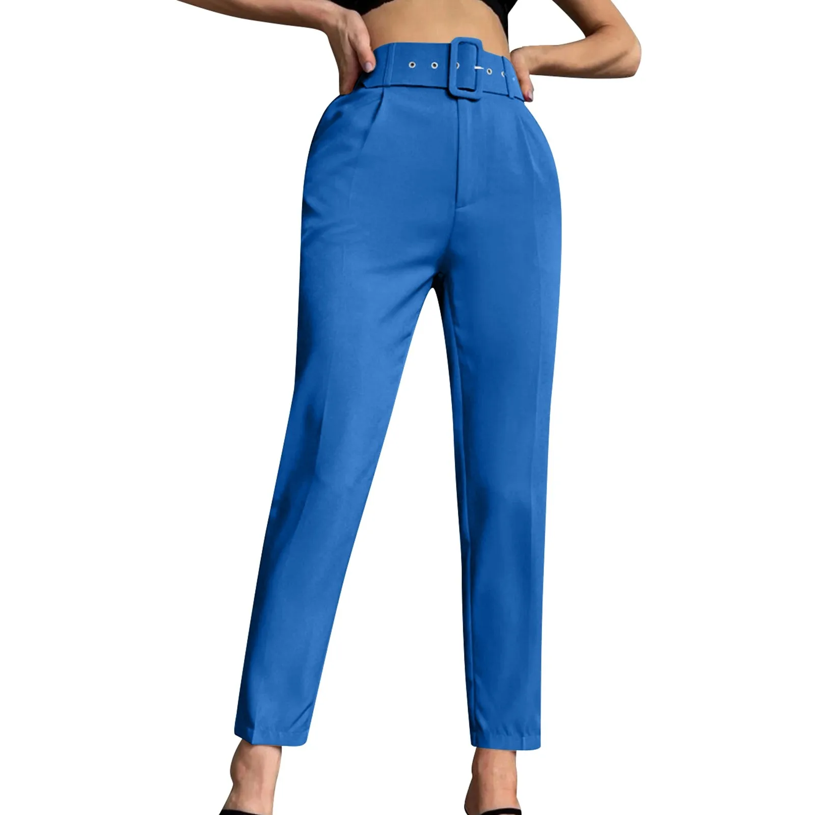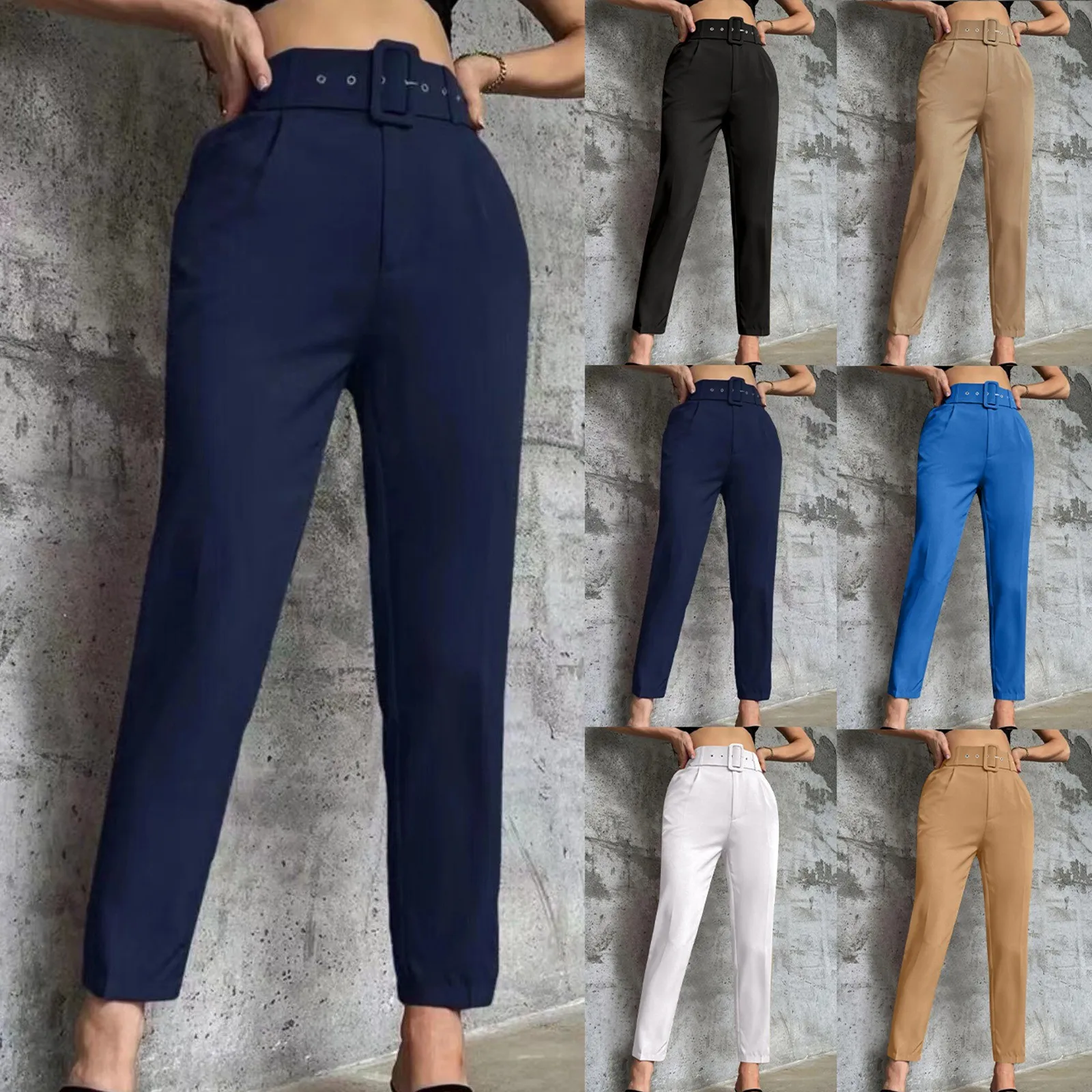 Women’s Summer Solid Color High Waisted Slim Comfortable Casual Straight Leg Nine Point Pants