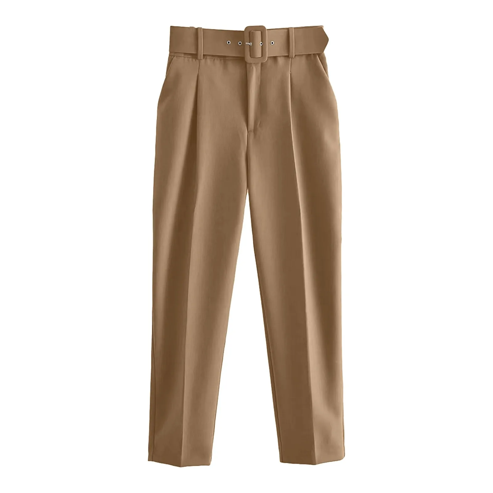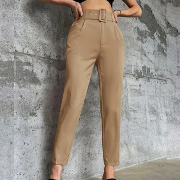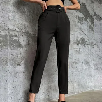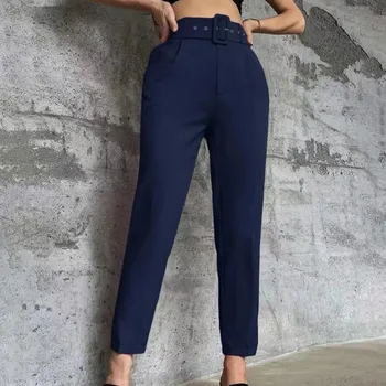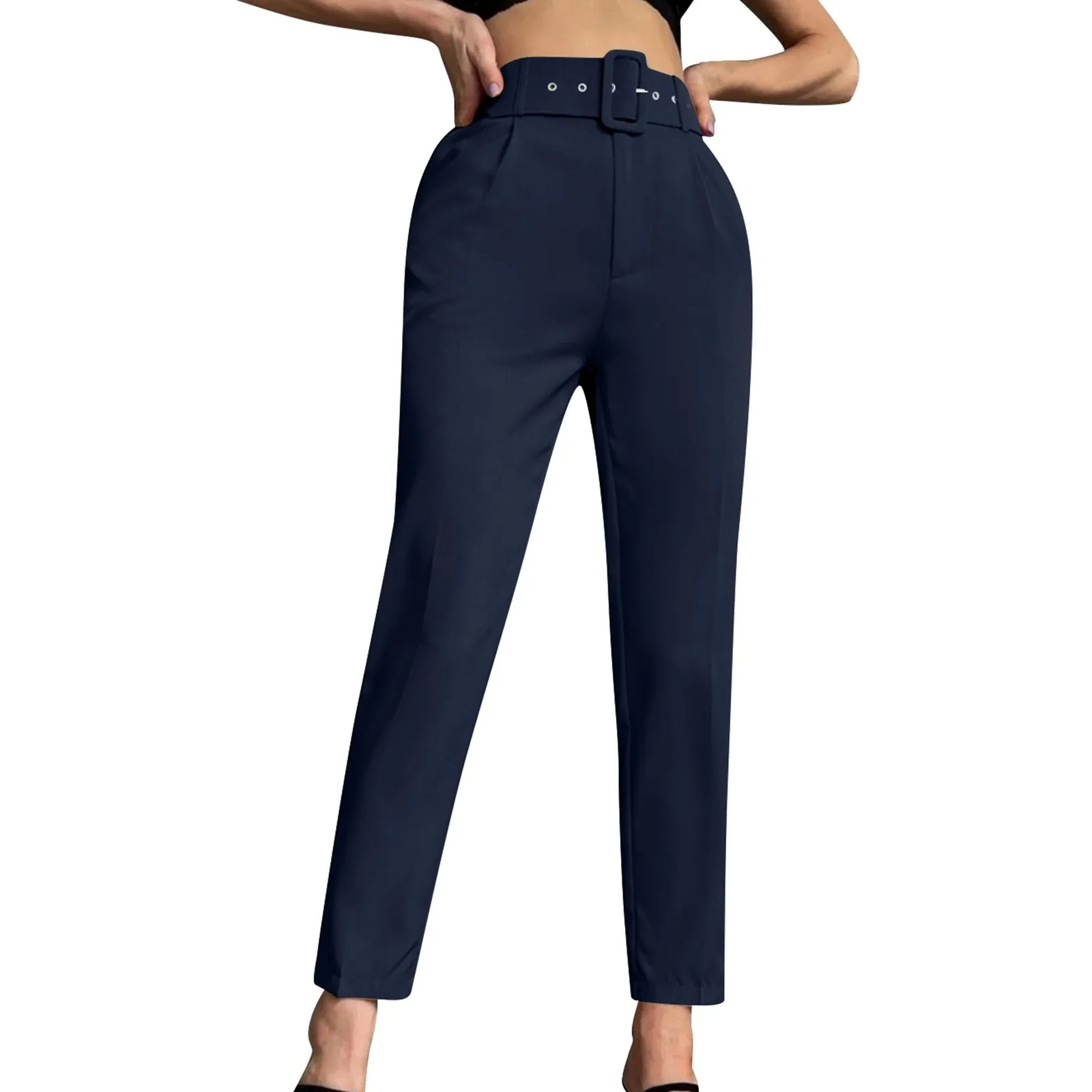 Women’s Summer Solid Color High Waisted Slim Comfortable Casual Straight Leg Nine Point Pants