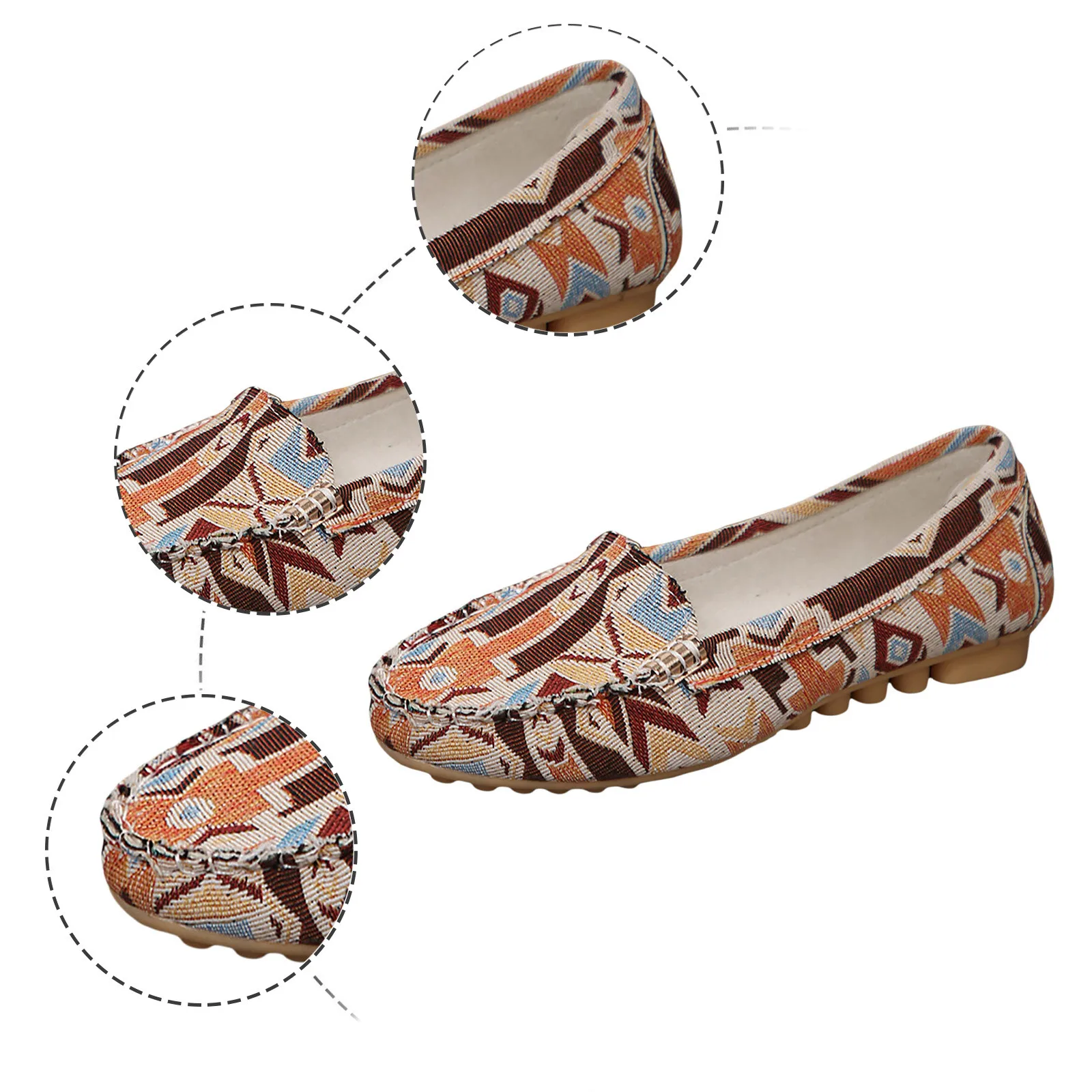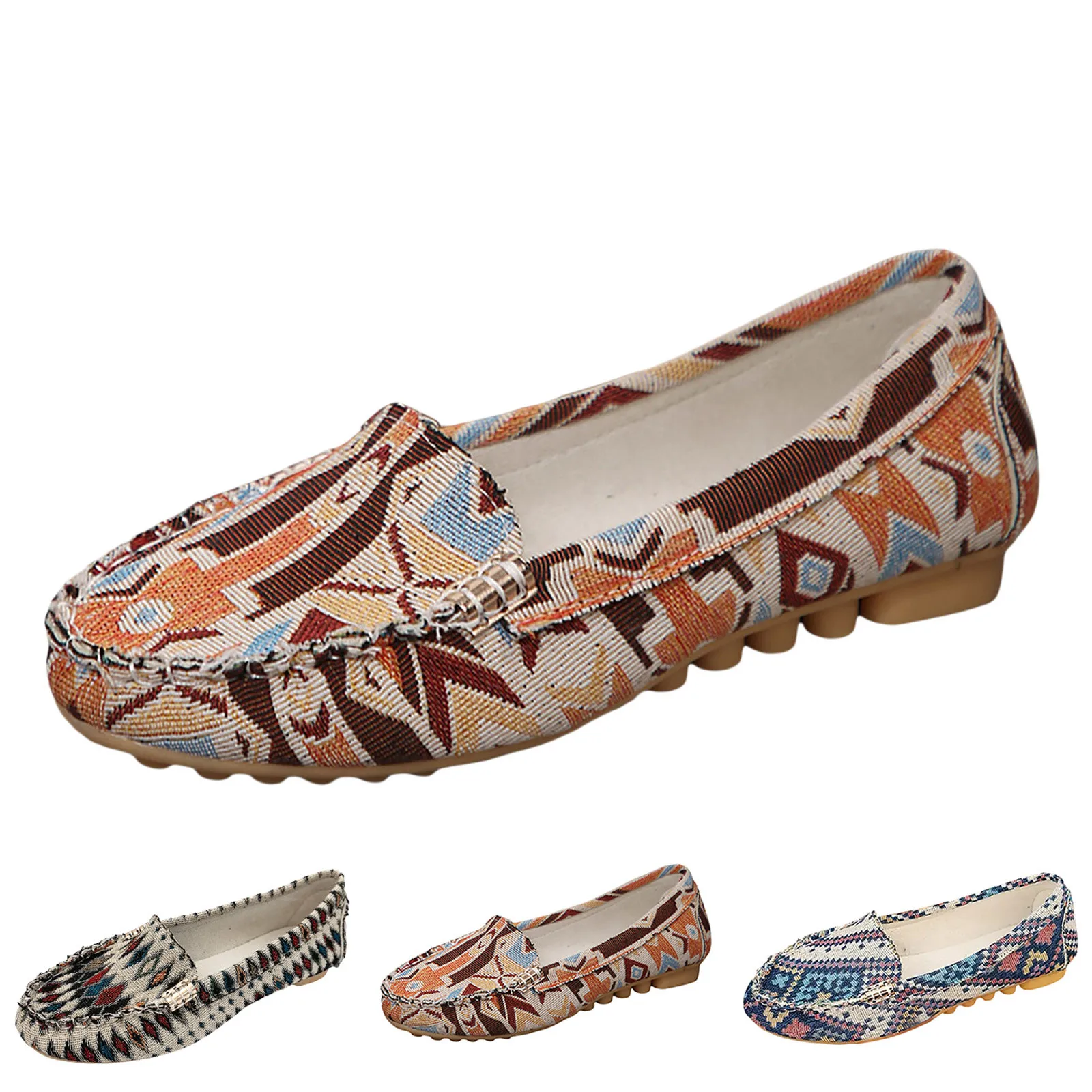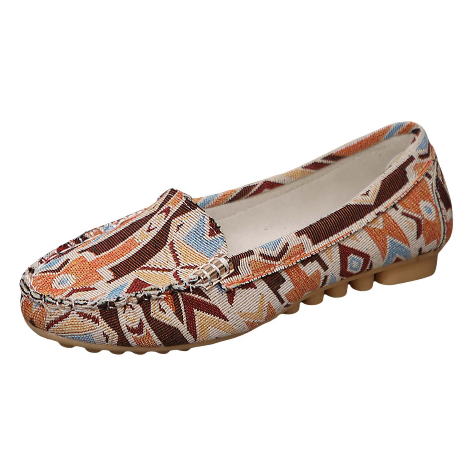 Leisure Women’s Four Seasons Cloth Prints Non Slip Flat Round Toe Breathable Slip On Lazy Shoes