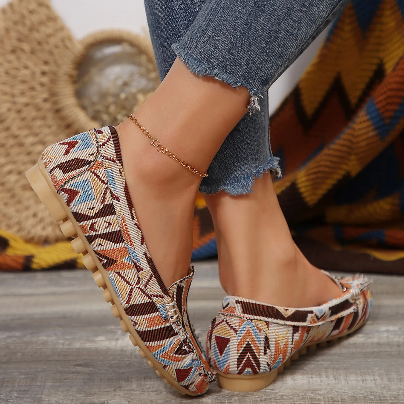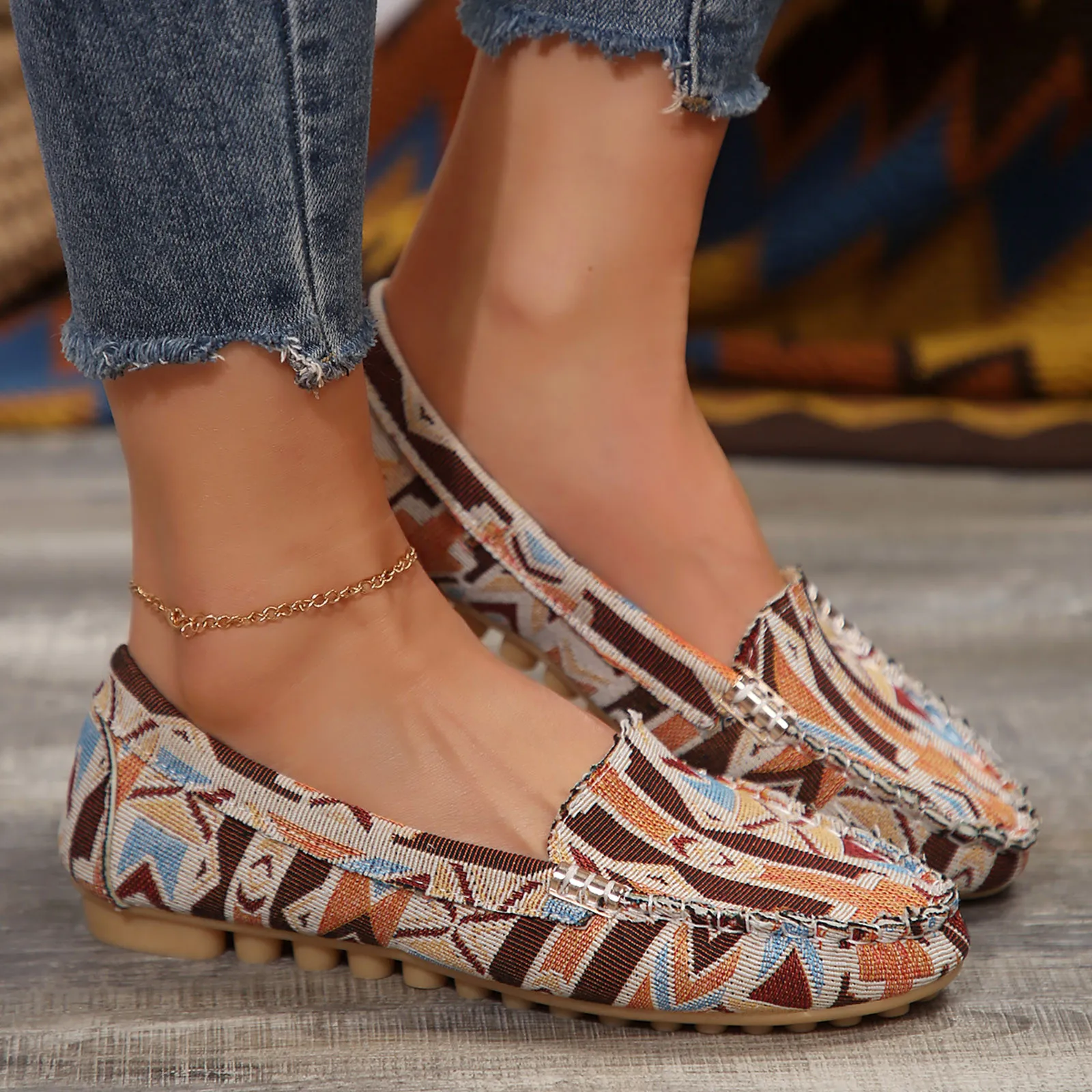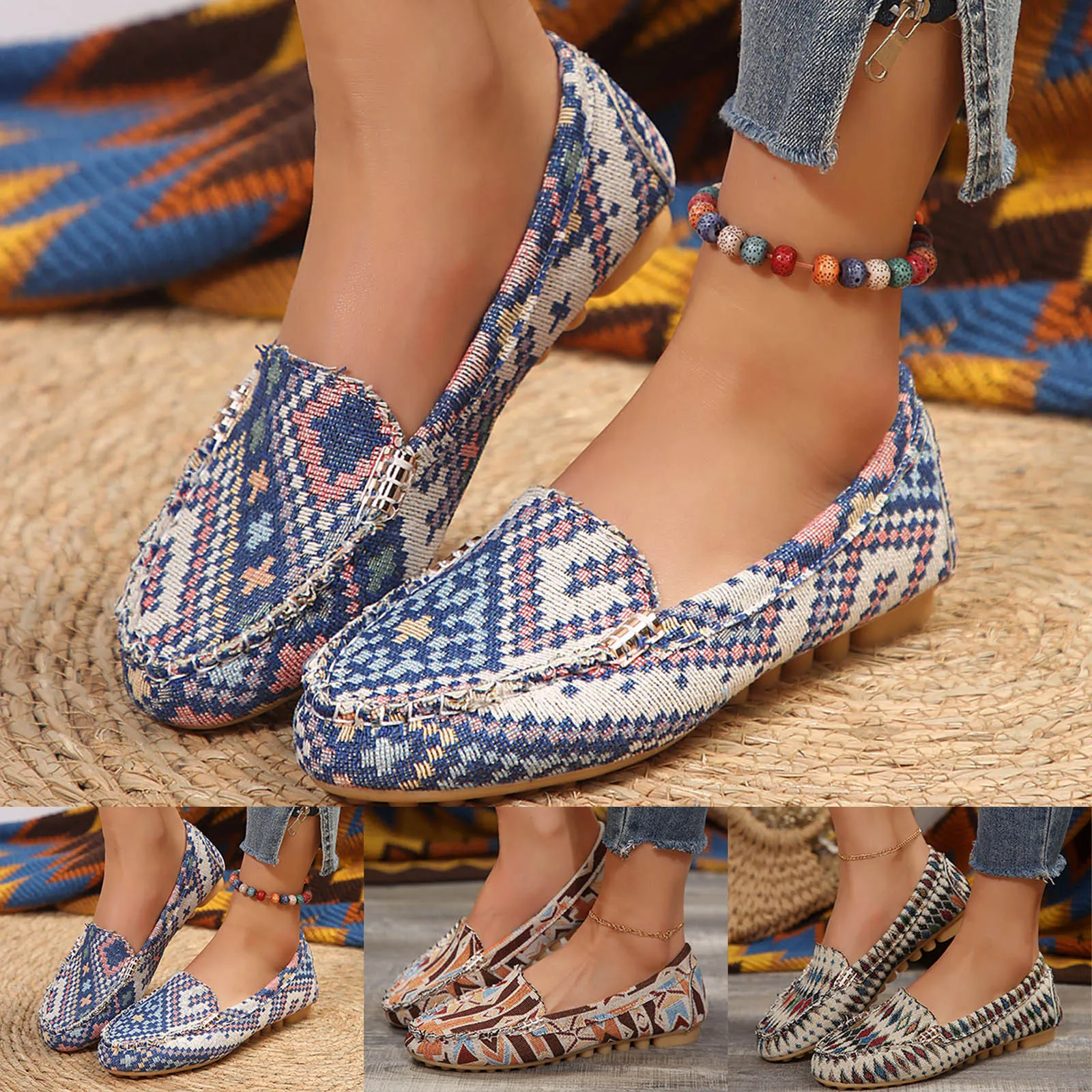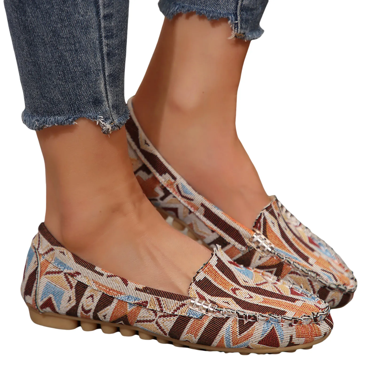 Leisure Women’s Four Seasons Cloth Prints Non Slip Flat Round Toe Breathable Slip On Lazy Shoes