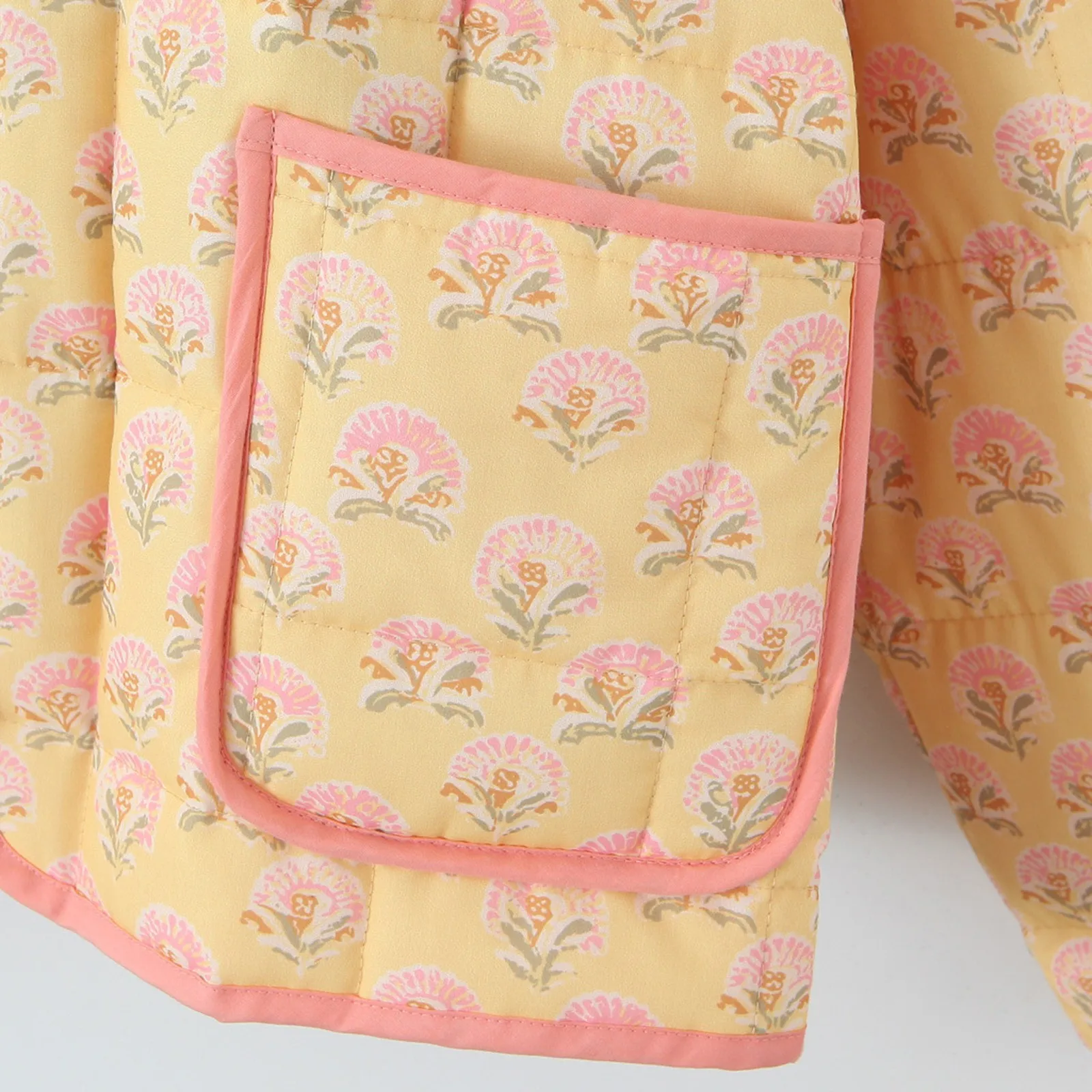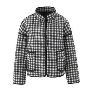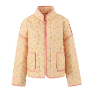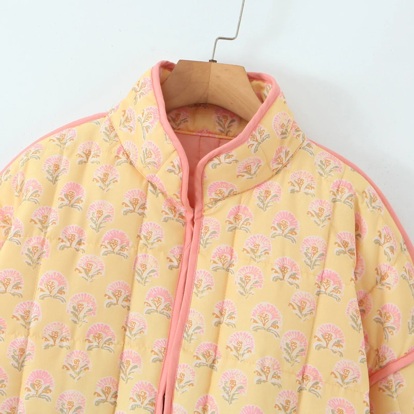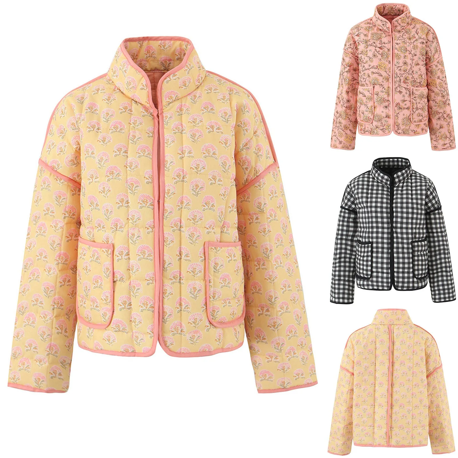 Women’s Fashion Print Color Matching Loose Long Sleeve Jacket Small Padded Jacket