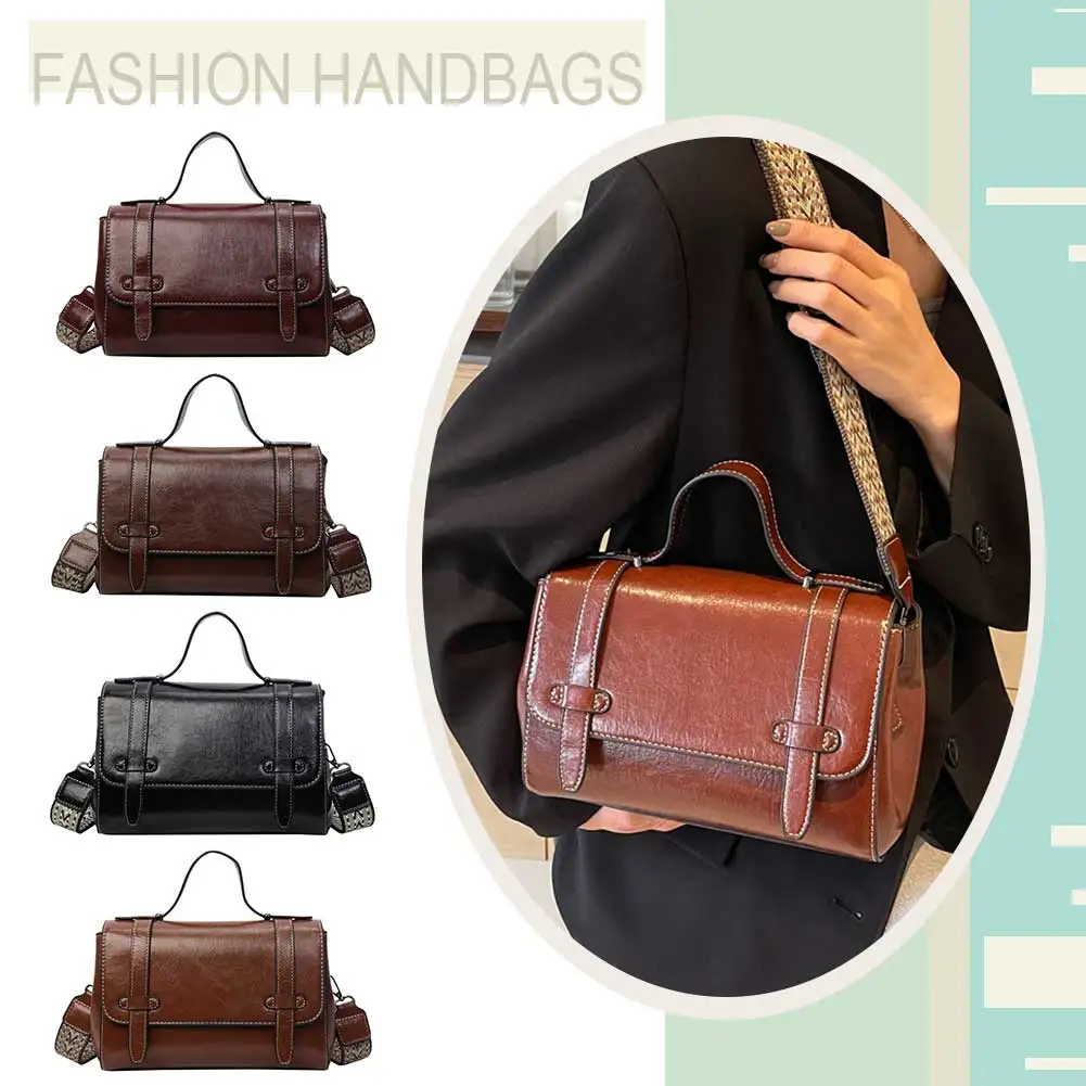 Women PU Leather Satchel Purse Adjustable Strap Crossbody Bag Solid Color Messenger Bag Trendy Handbag for Work Travel