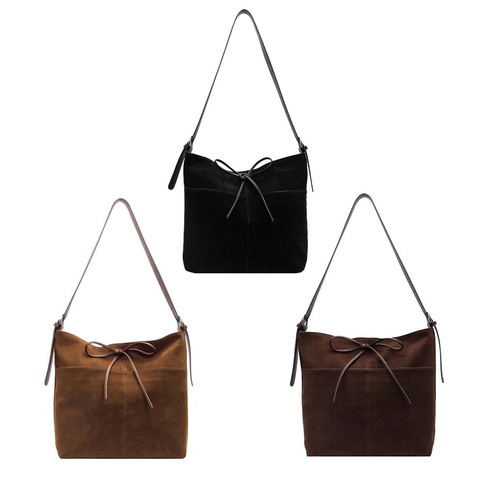 Shoulder Bag for Women Bow Crossbody Bag PU Leather Adjustable Strap Bucket Bag with Zipper Satchel Bag for Work Travel Feature: 1. Premium Material: This shoulder bag is crafted from PU leather and suede, offering a luxurious and comfortable texture. It is built to last and can withstand the test of time, while also being incredibly easy to clean and maintain. 2. Perfect Size: This trendy crossbody bag is 380.00×330.00×110.00mm/14.96×12.99×4.33inch, providing ample space for your wallet, phone, cosmetic products, glasses, and other small items. 3. Unique Structure: This handbag boasts a unique structure that combines convenient pocket storage with a user-friendly design, resulting in effortless carrying and easy access to your belongings. 4. Versatile Design: Our solid bucket bag adapts to your needs, functioning as a shoulder bag, crossbody bag. Its adjustable strap provides flexibility, while its portable size, travel-friendly features. 5. Thoughtful Gift: This satchel bag is a great choice for shopping, holiday parties, and travel street photography. It’s also a wonderful gift for moms, girlfriends, and wives. Specification: Size: 380.00×330.00×110.00mm/14.96×12.99×4.33inch Note: 1 X Shoulder Bag