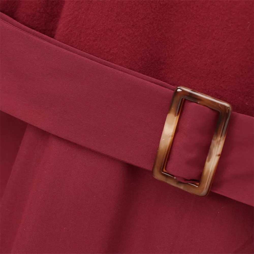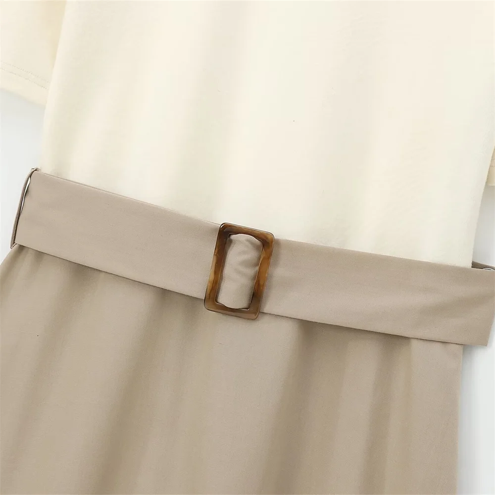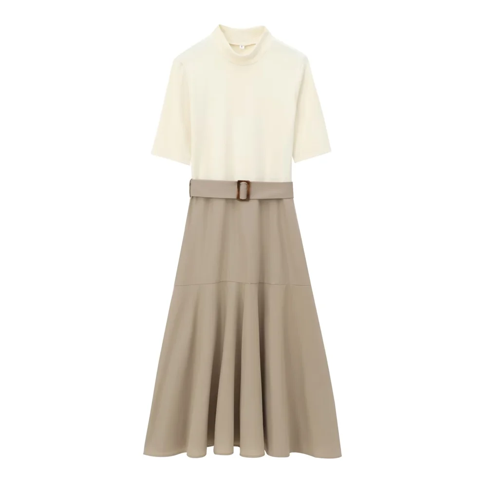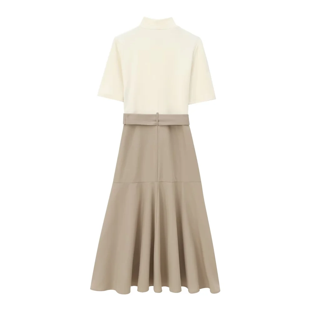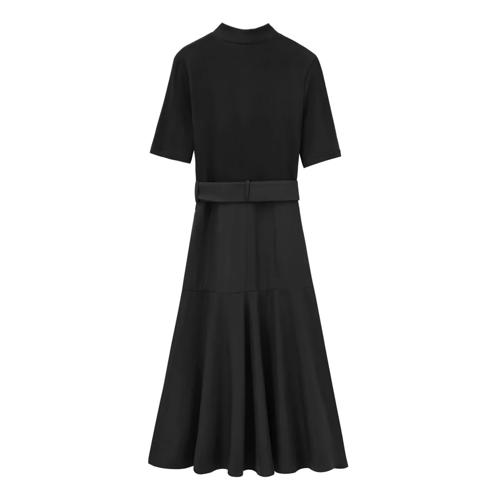 Women’s Retro Fashion Stand up Collar Short Sleeve with Belt Soft Slimming Dress