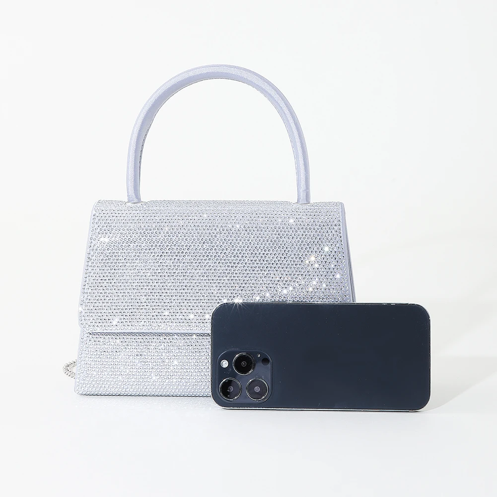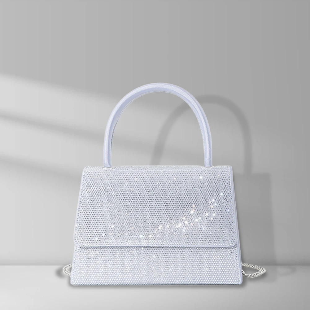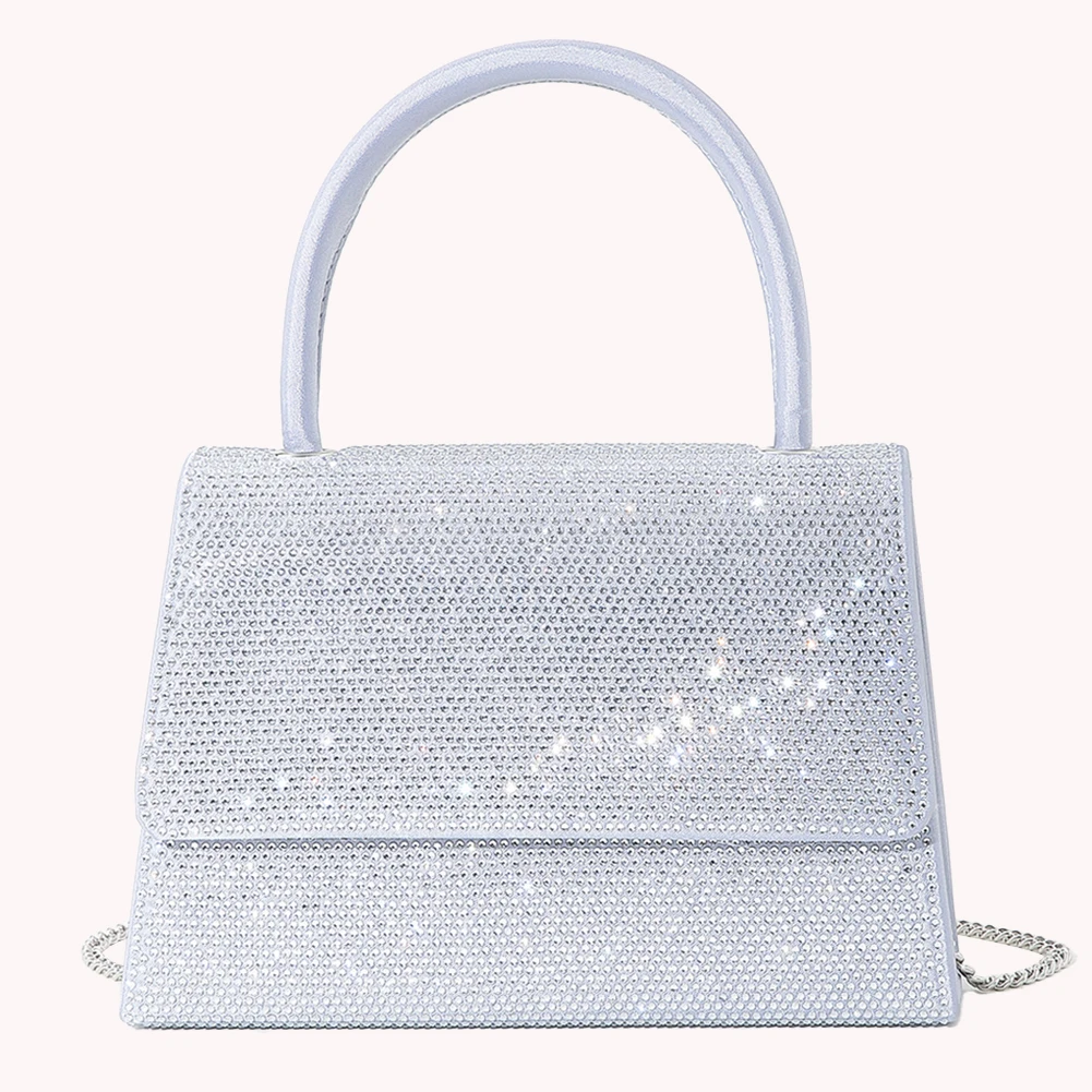 Women Prom Shoulder Bag Chain Rhinestone Cocktail Prom Handbags Elegant Fashion Exquisite Simple Sparkling Elegant Crossbody Bag