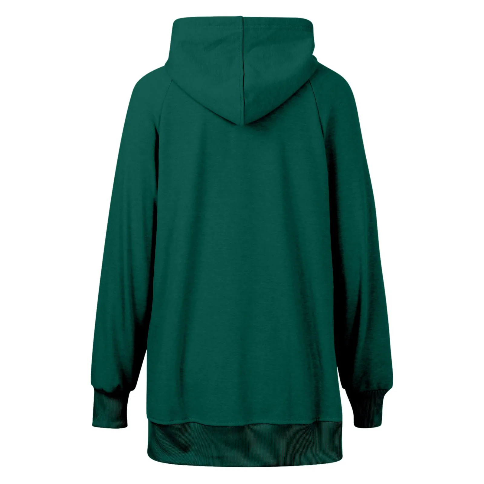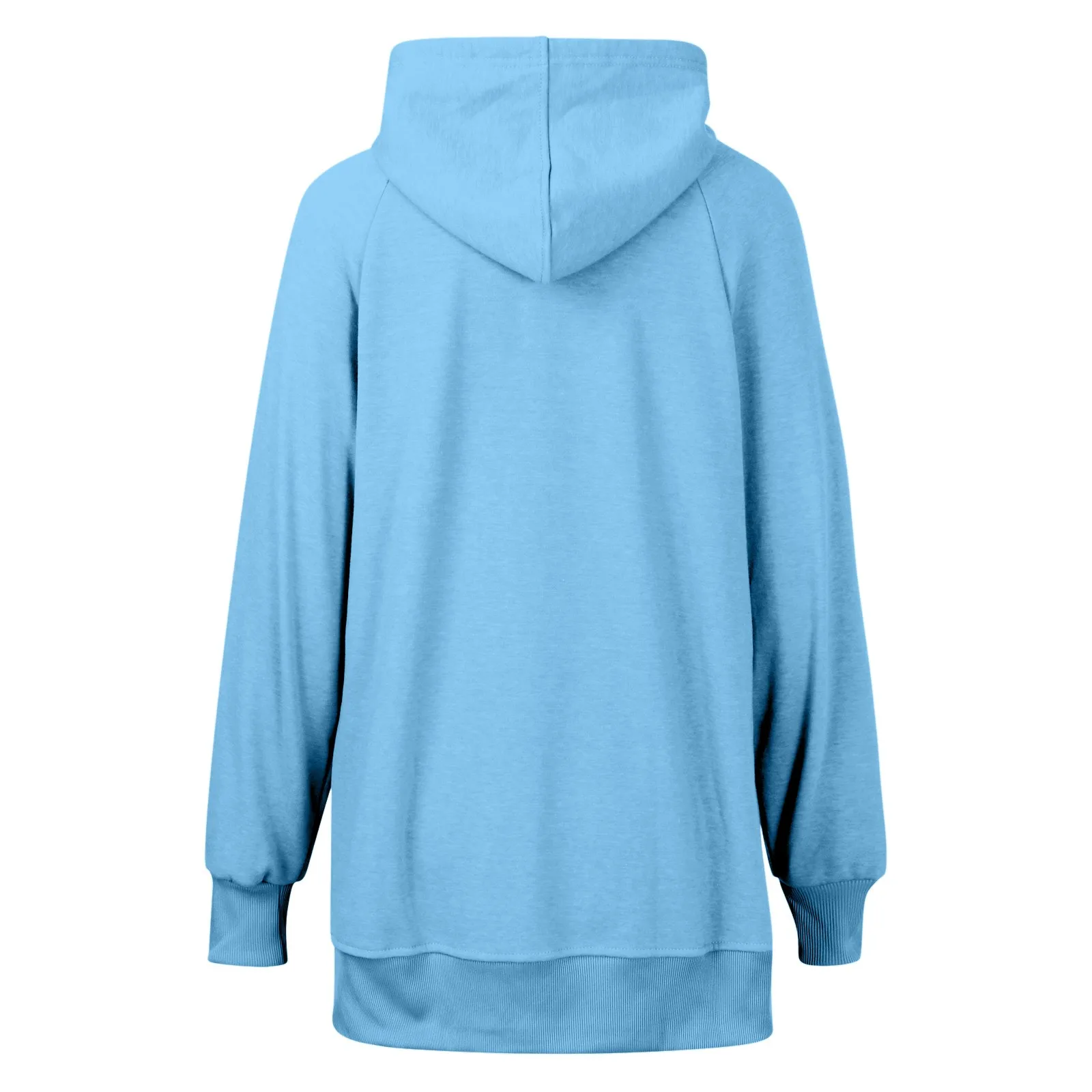 Women’s Solid Casual Pullover Sweatshirt Long Sleeve Slit Hoodie.