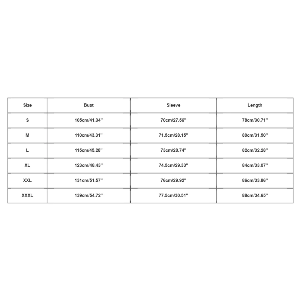 Size:XXL Bust:131cm/51.57” Sleeve:76cm/29.92” Length:86cm/33.86”