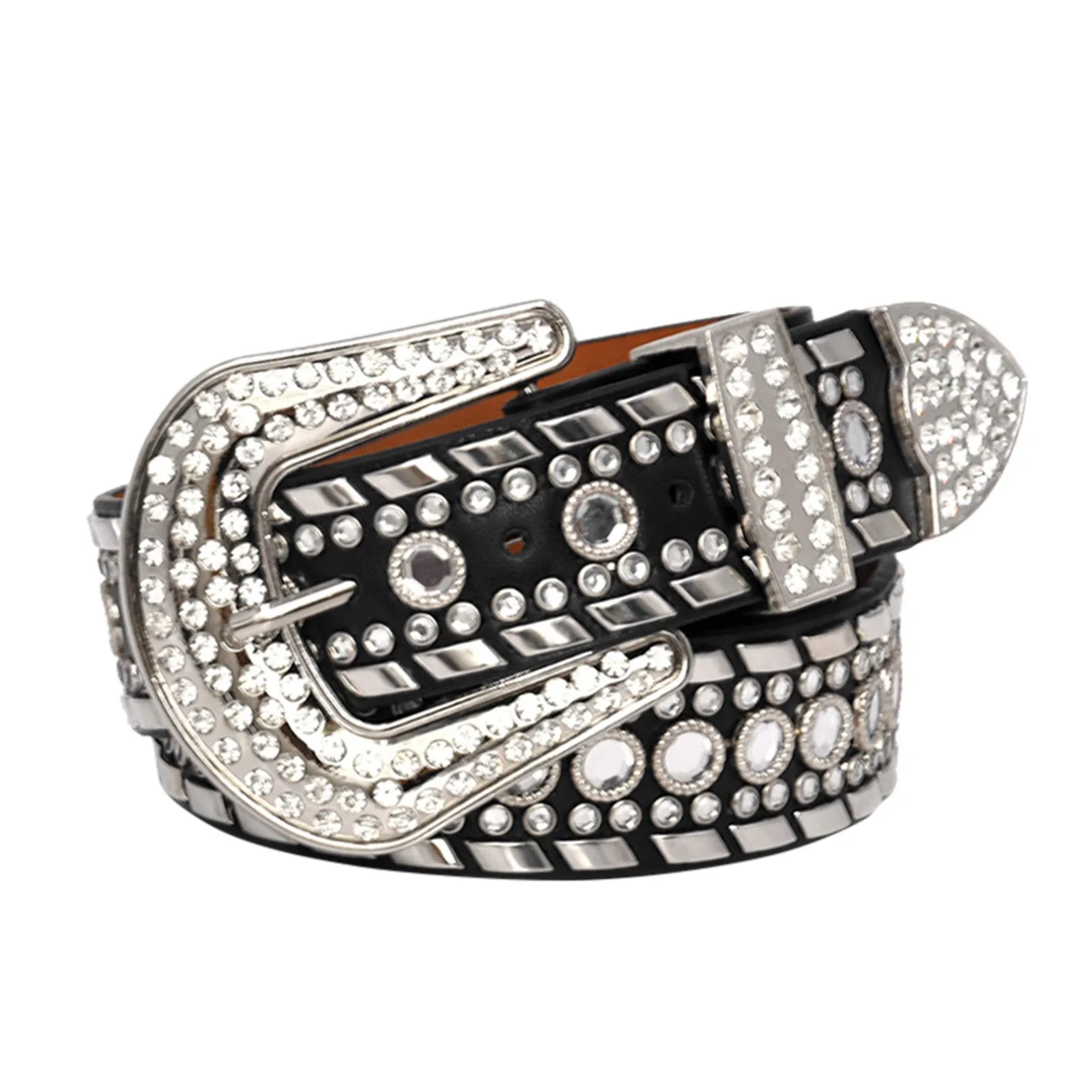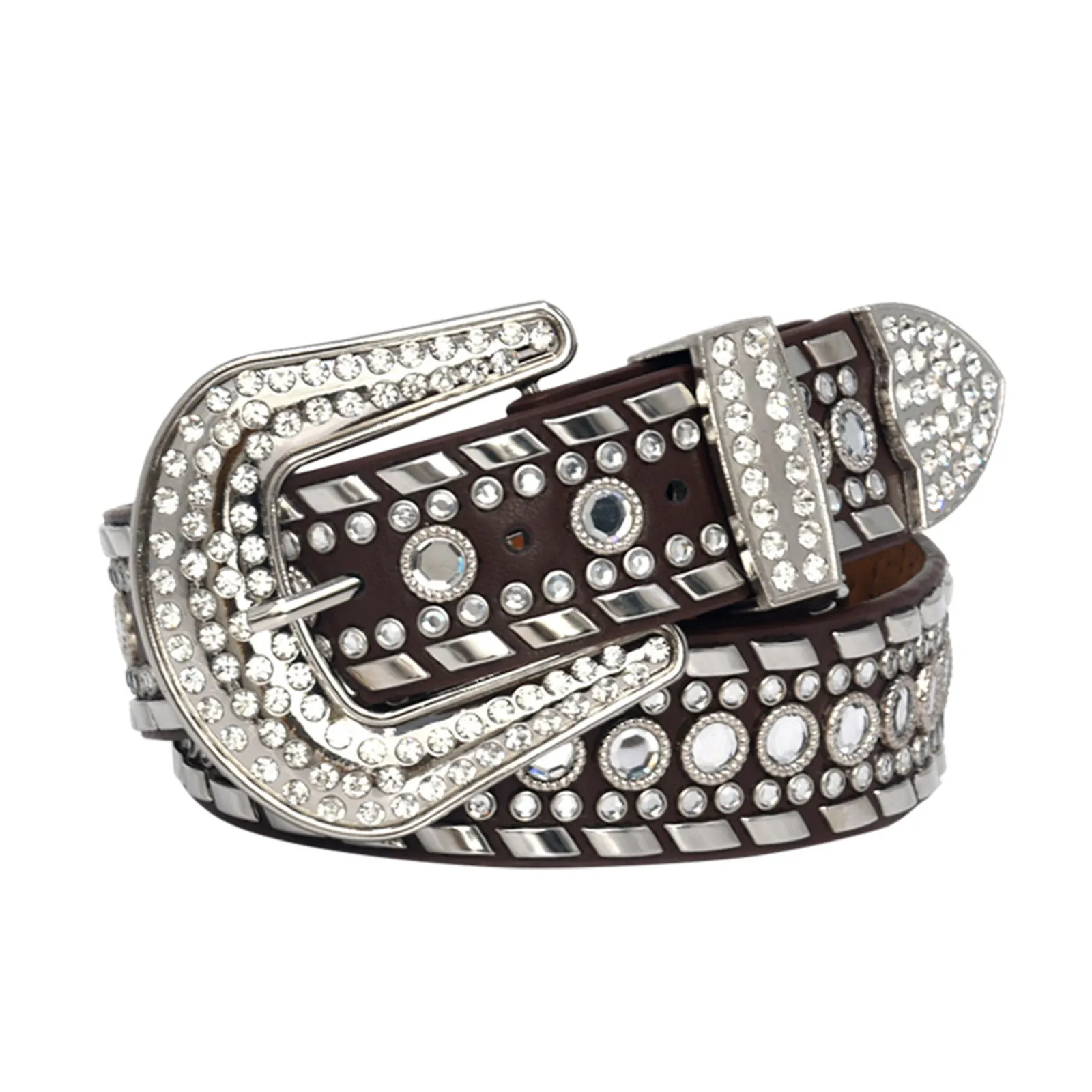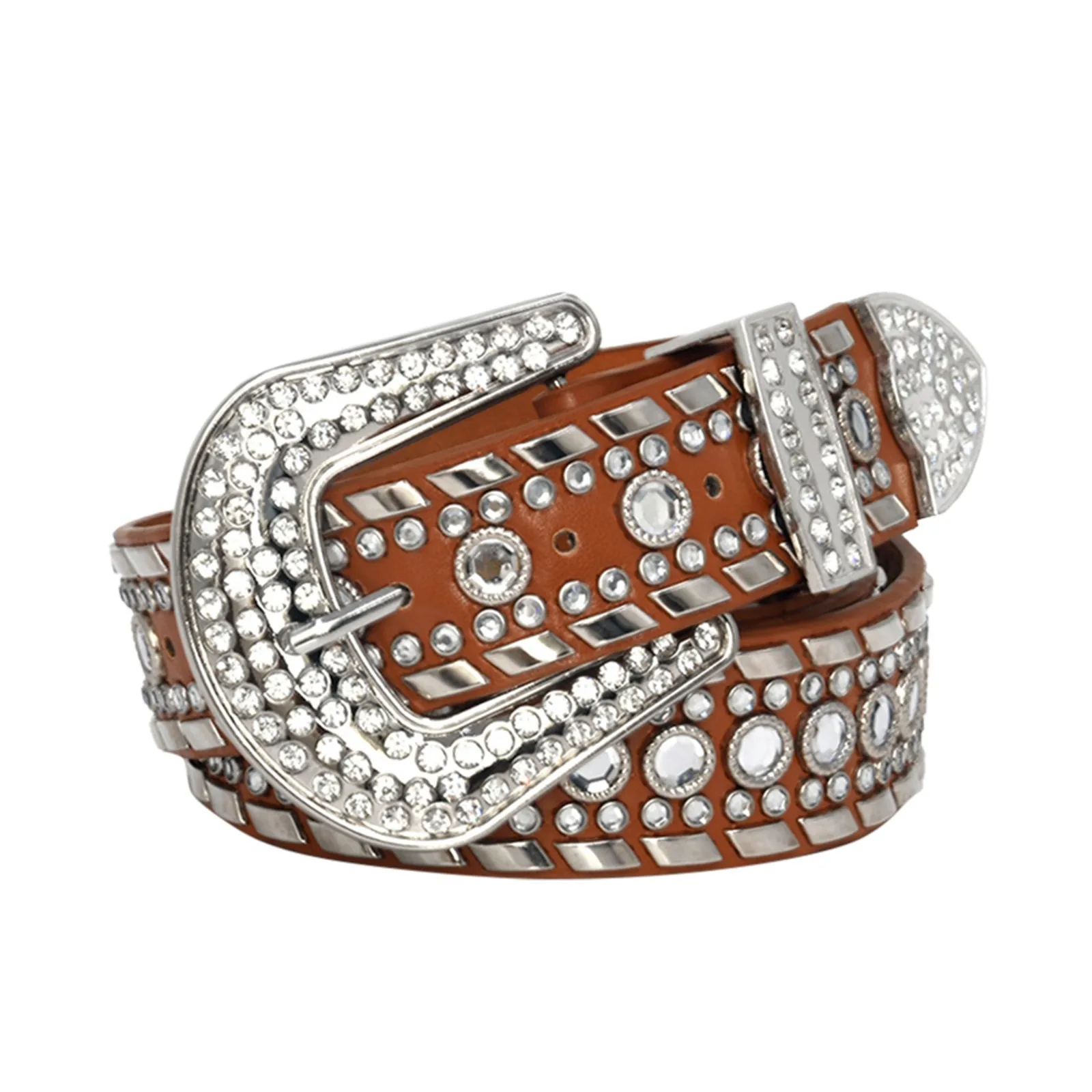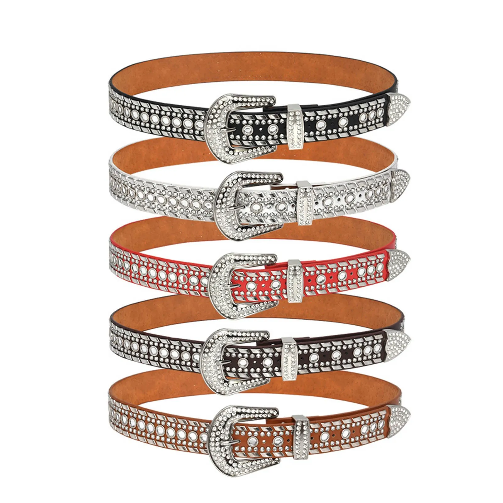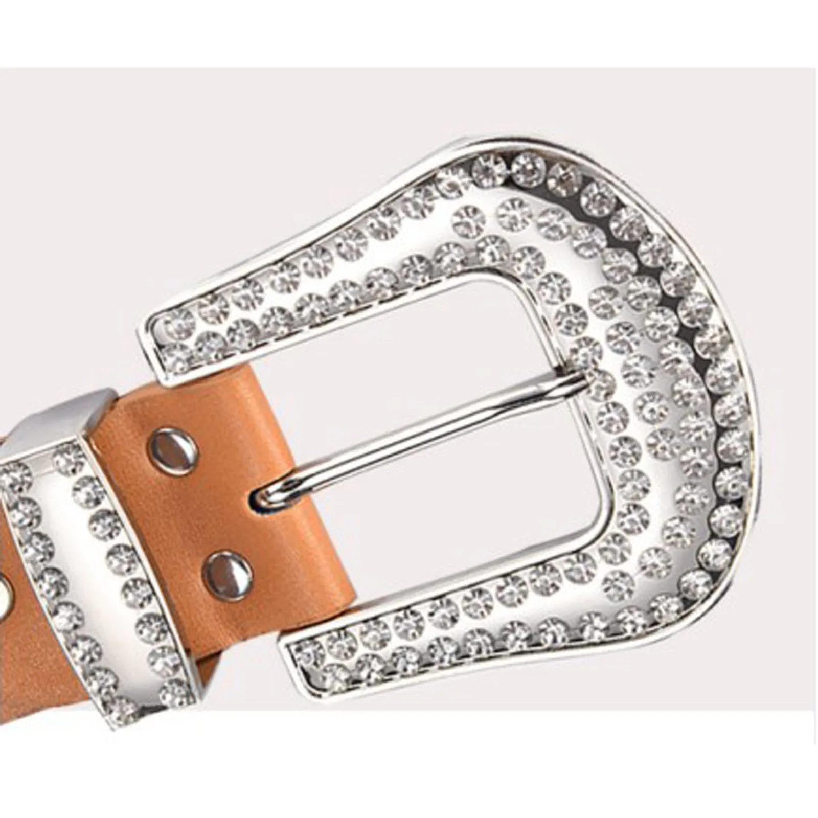 Women Bling Leather Belts for Jeans Pants with Fashion Silver Buckle