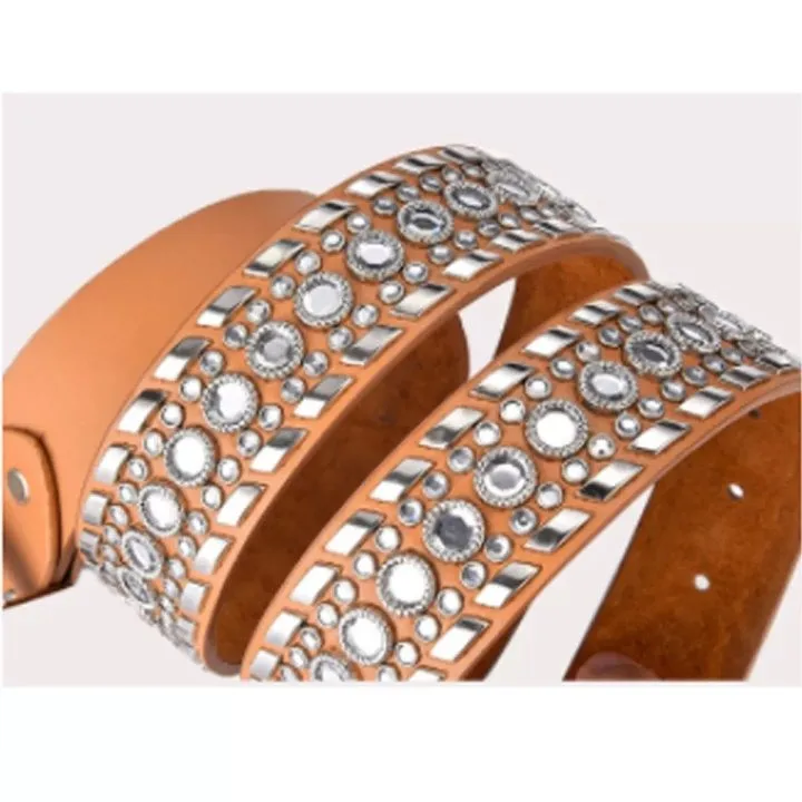 The design of the women’s belts adopts the popular of bohemian style, which perfectly combines fashion, beauty, elegance, luxury and other styles. The surface of the leather belts for women has hand-embellished rhinestones, which shine like , making you more outstanding .