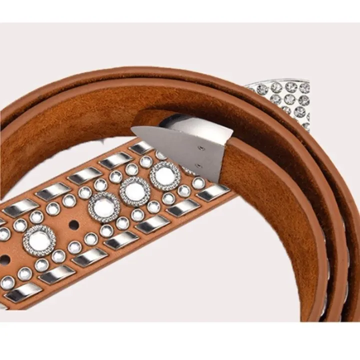 Women Bling Leather Belts For Jeans Pants With Fashion Silver Buckle