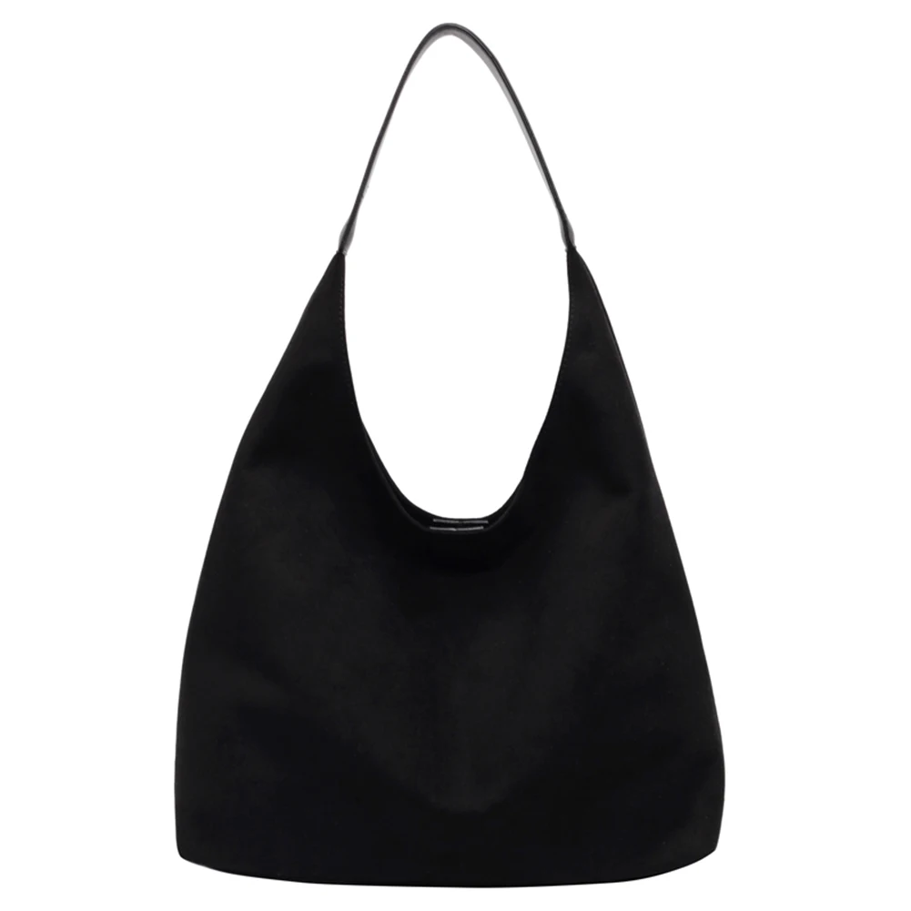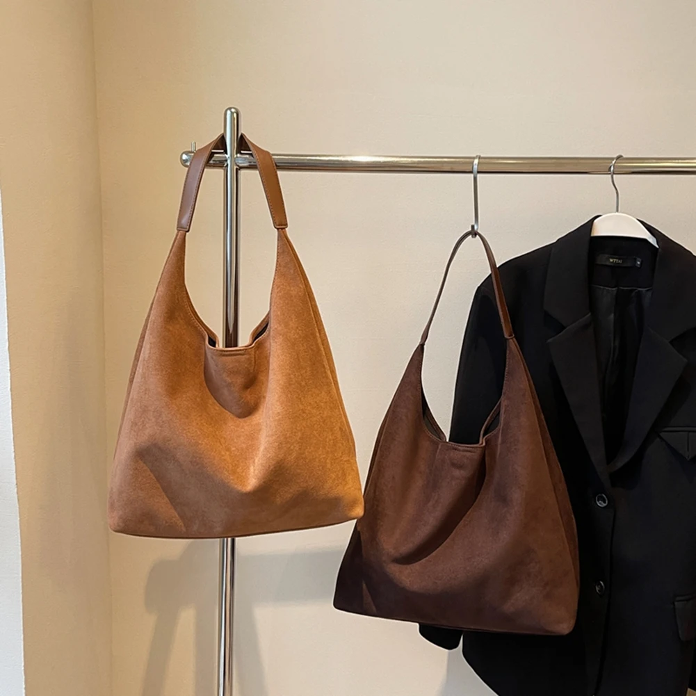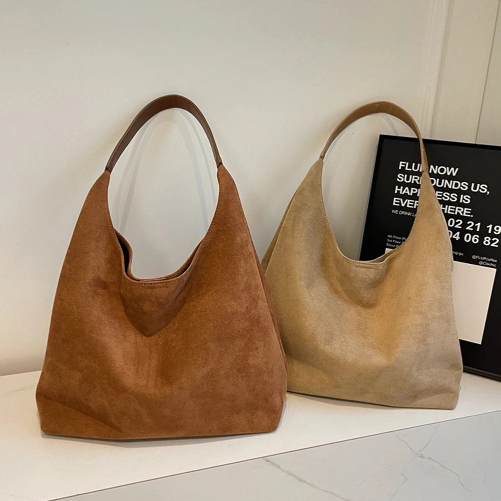 Women Suede Shoulder Bag Large Capacity Bucket Bag Trendy Retro Handbag with Pocket Hobo Bag for Work Travel Shopping