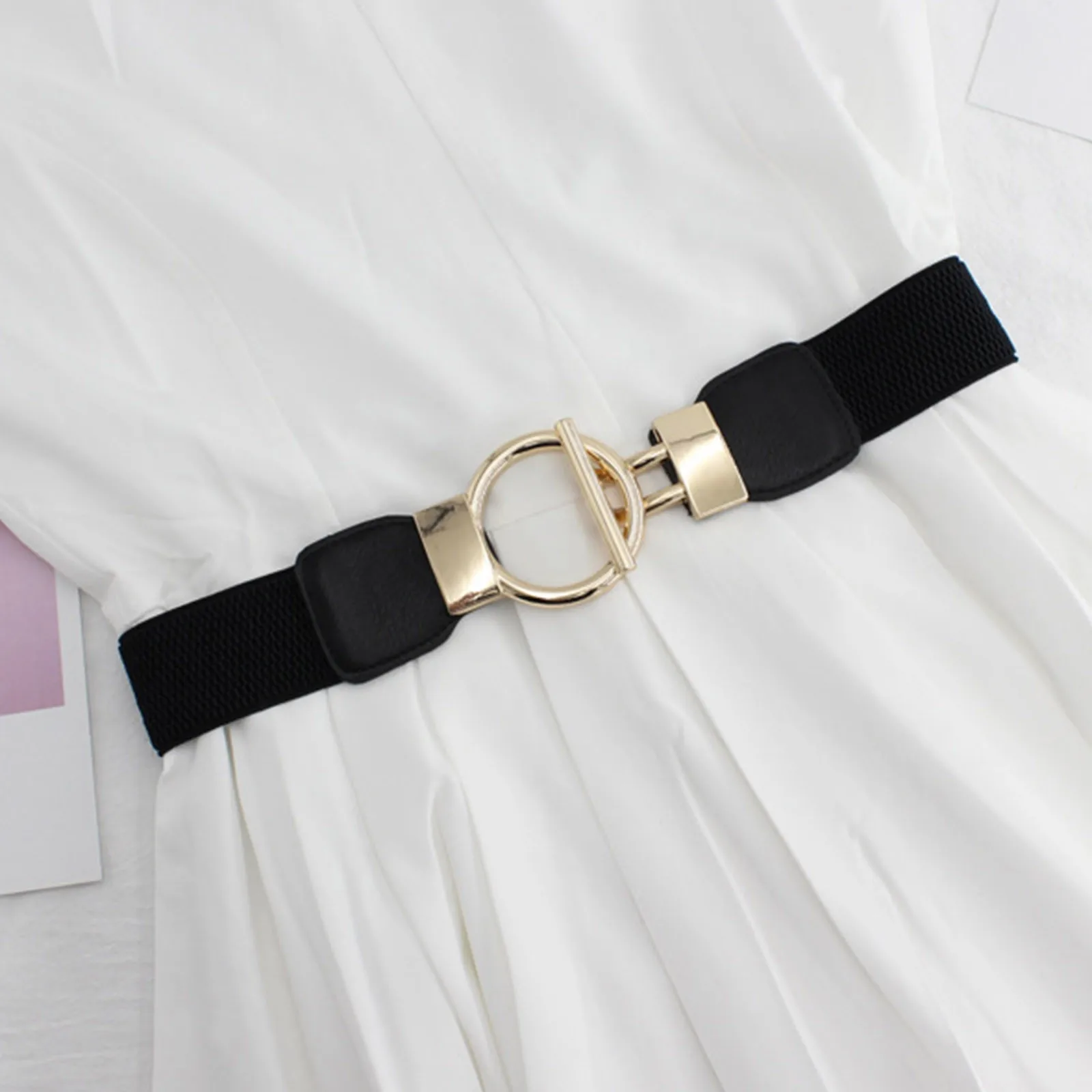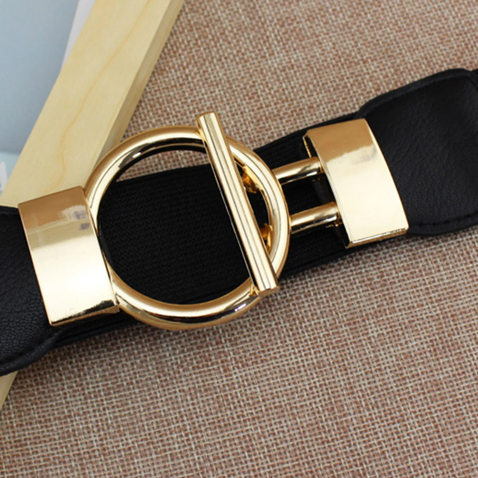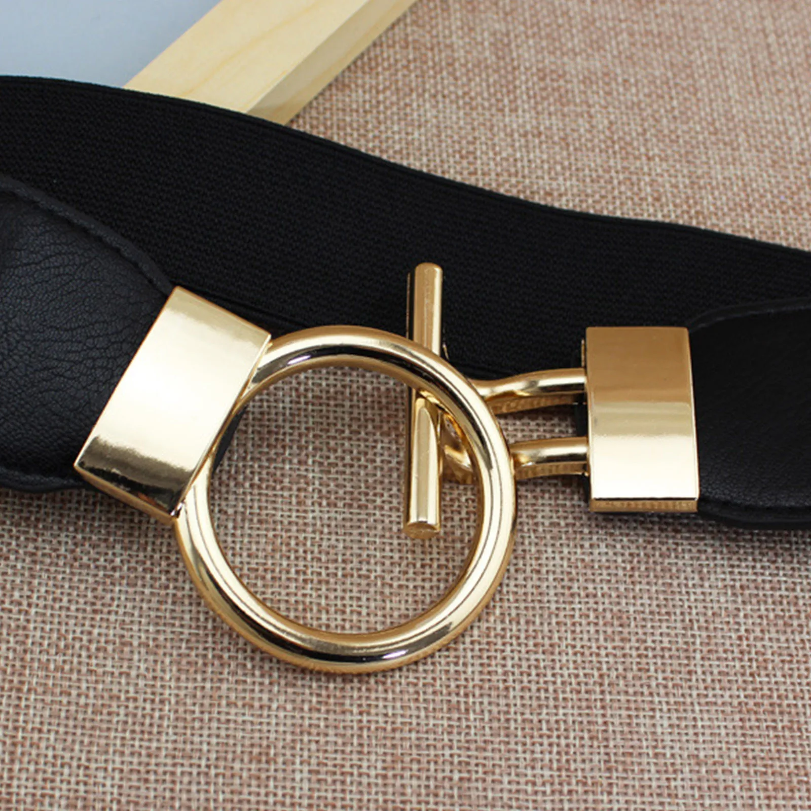 Womens Vintage Wide ElasticWaist Belt Dress Waist Sweater Coat Elastic Elastic Wide Waist Seal Flowers Shape Buckle Belt
