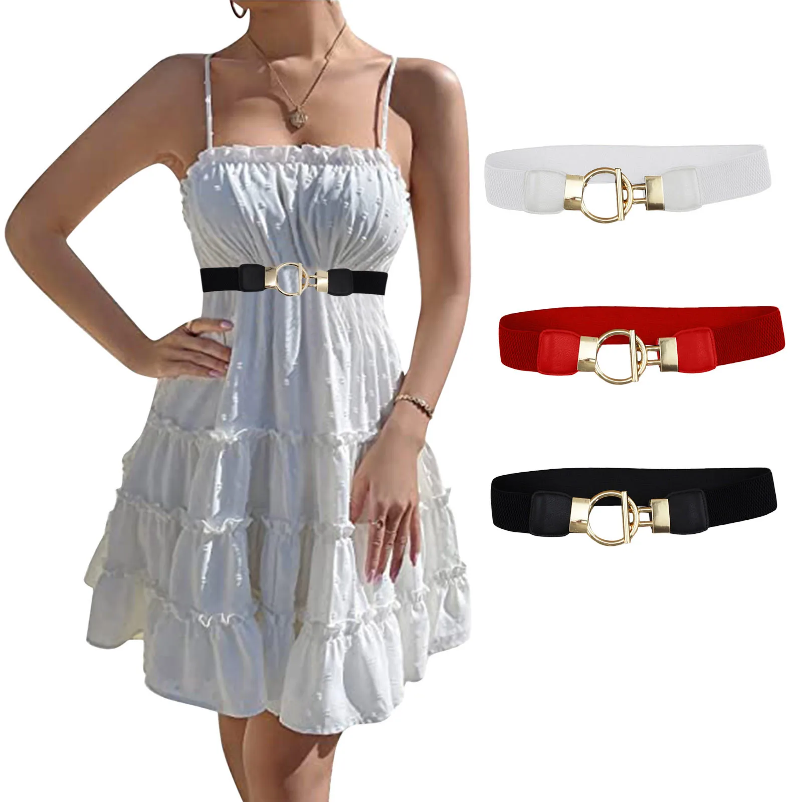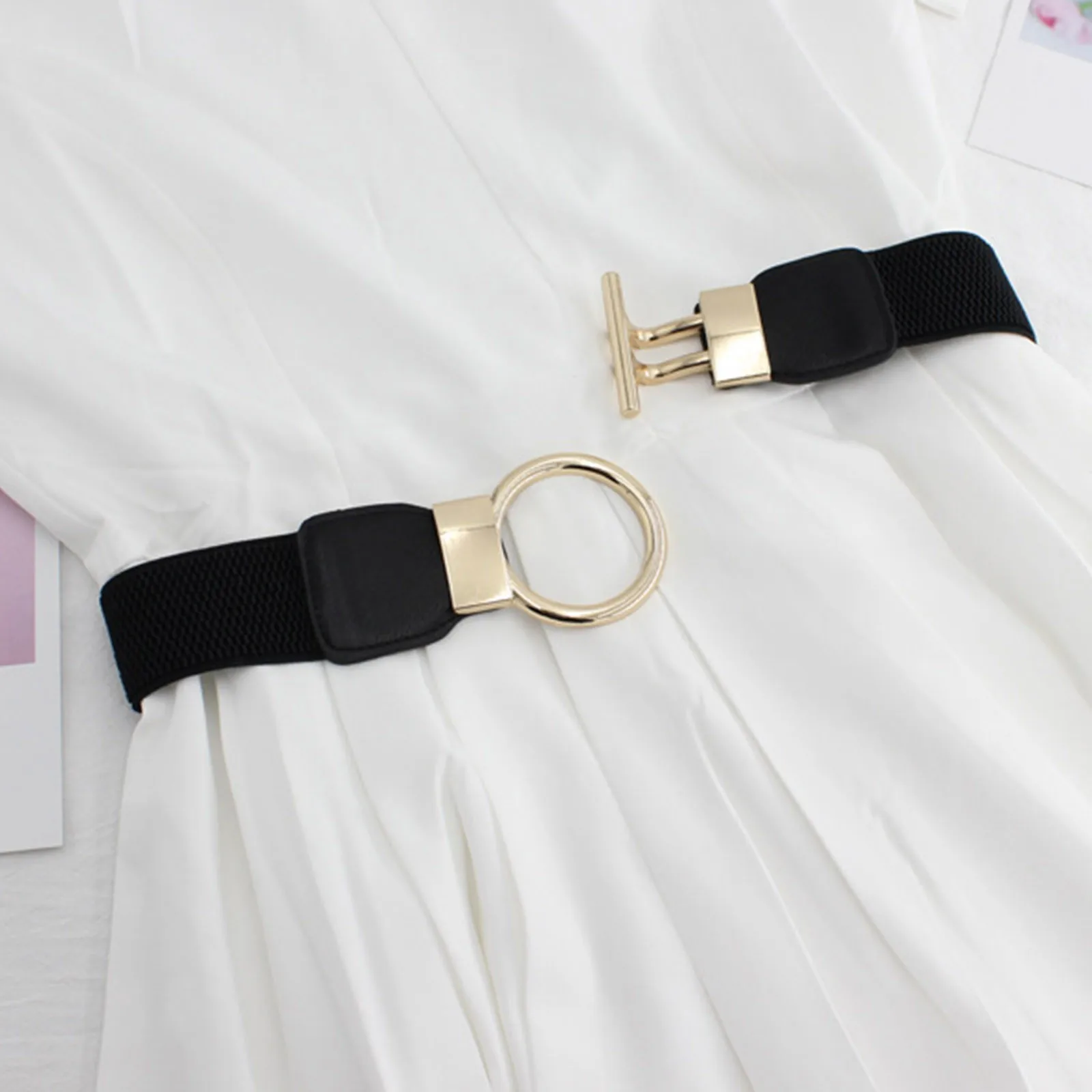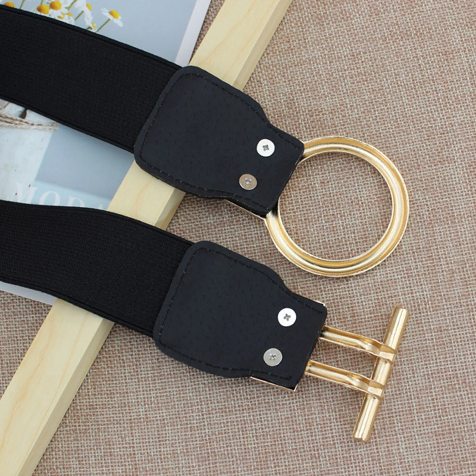 Womens Vintage Wide ElasticWaist Belt Dress Waist Sweater Coat Elastic Elastic Wide Waist Seal Flowers Shape Buckle Belt