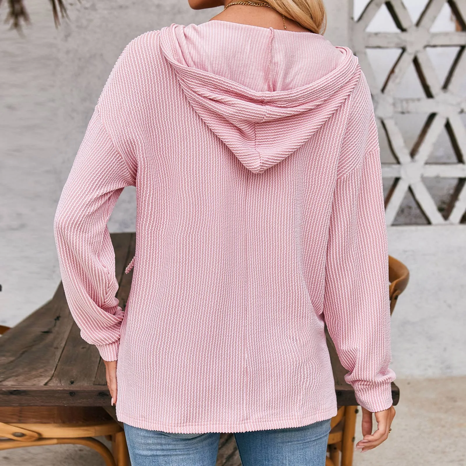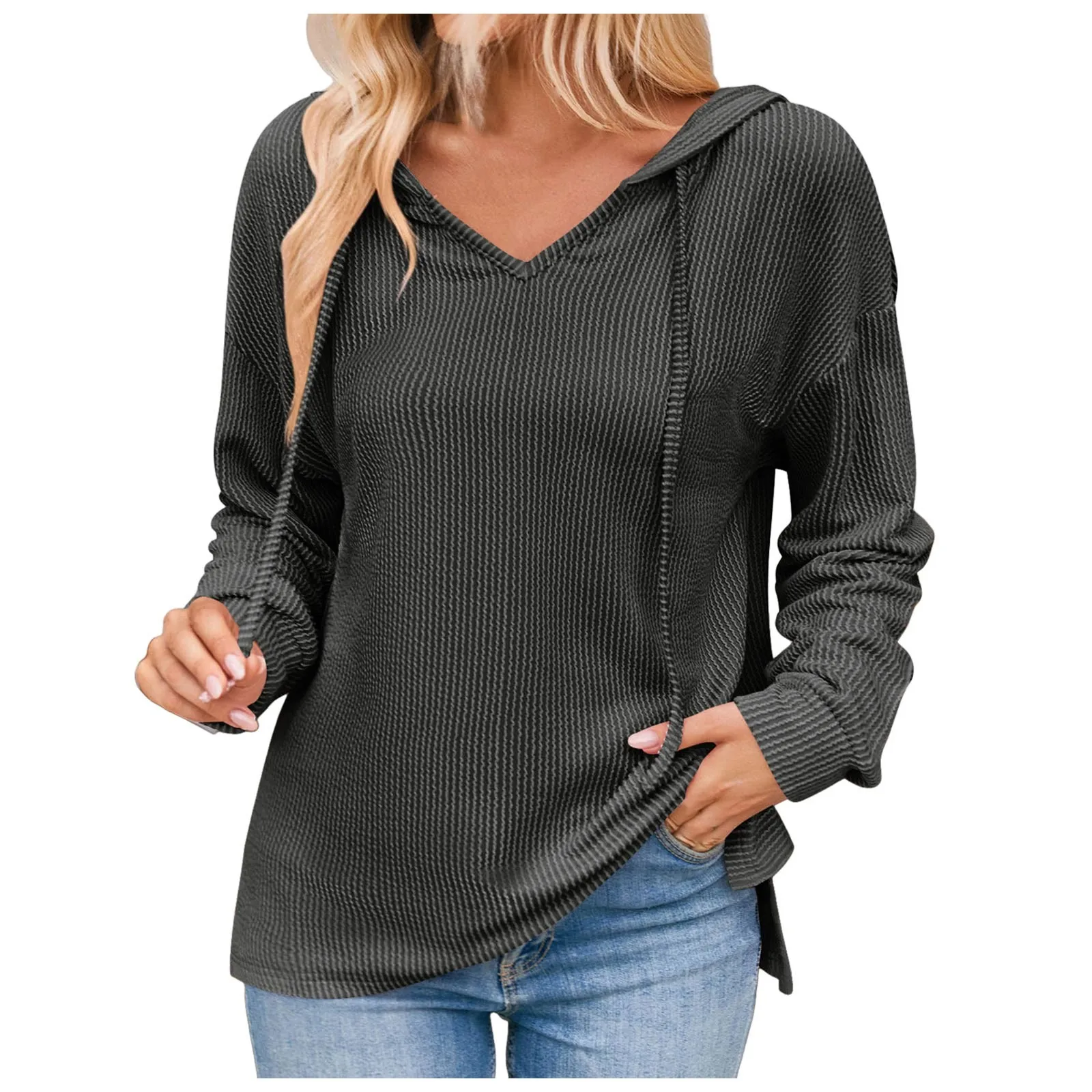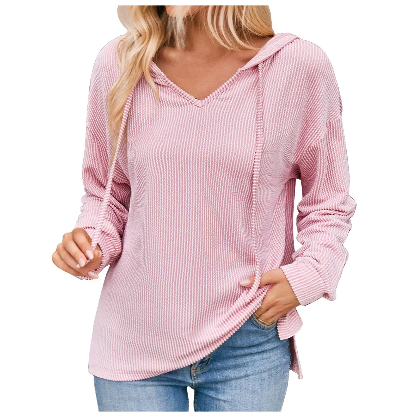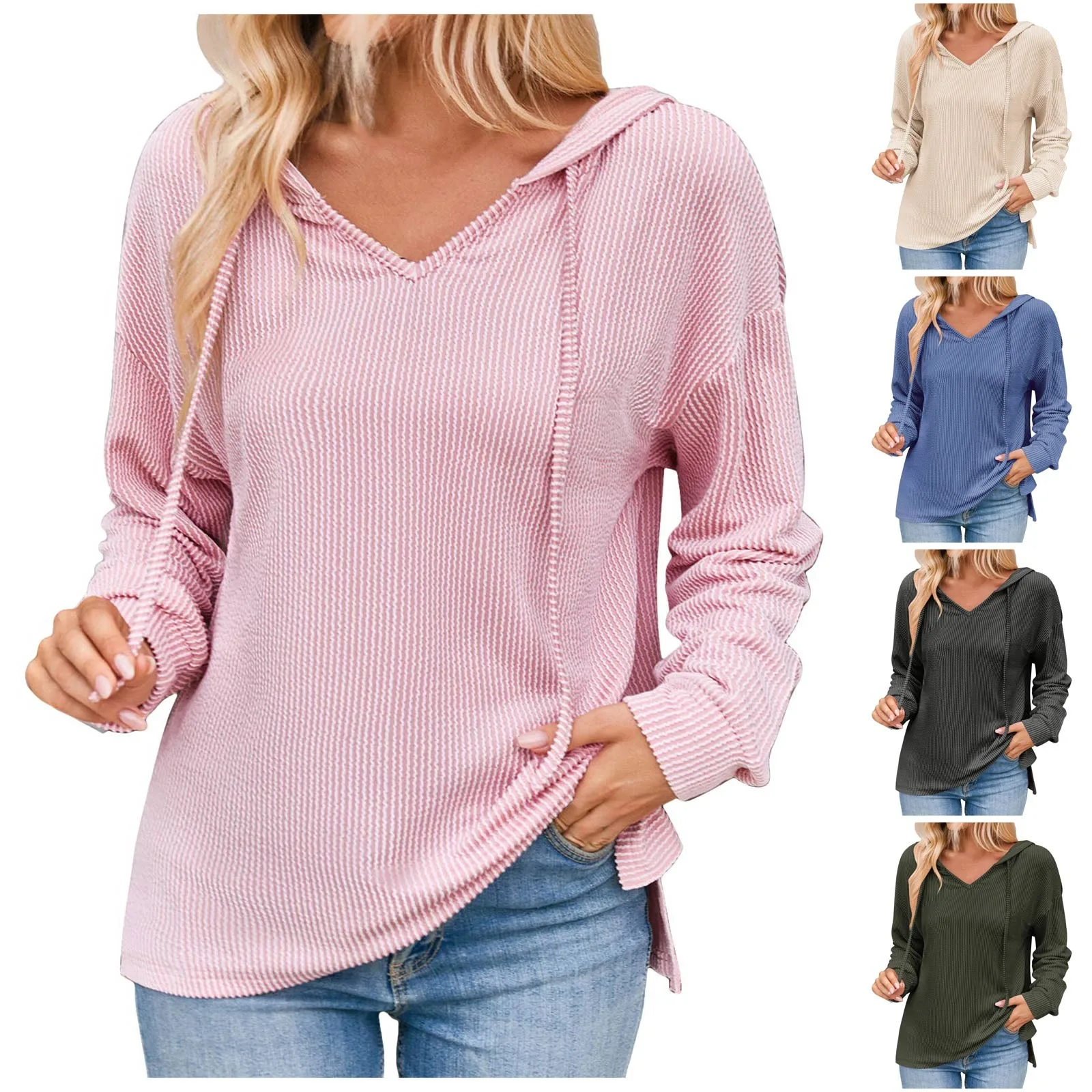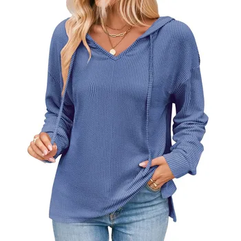 Women Fashion Tops Wave Casual Long Sleeve Knit Hoodie Sweatshirt