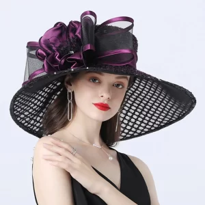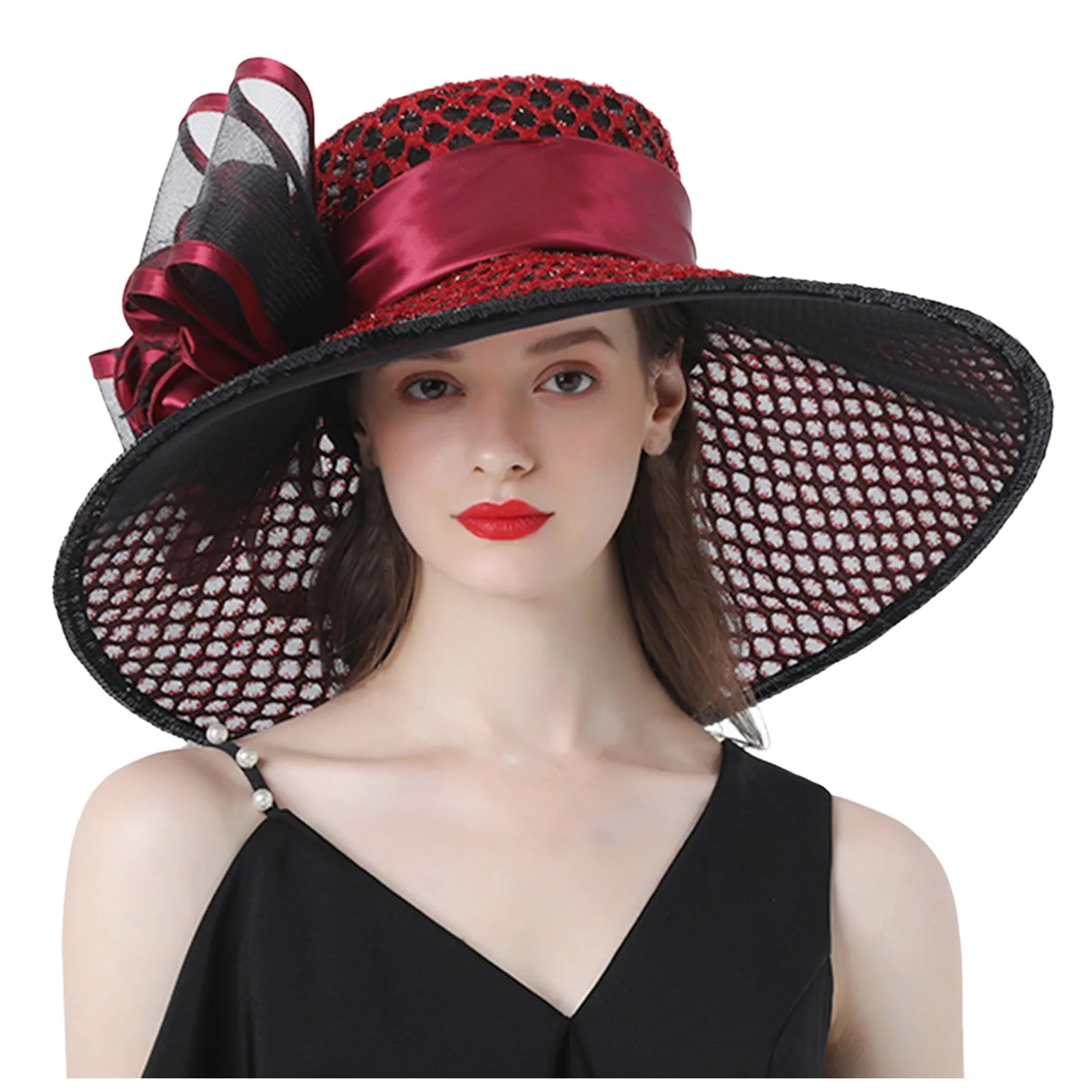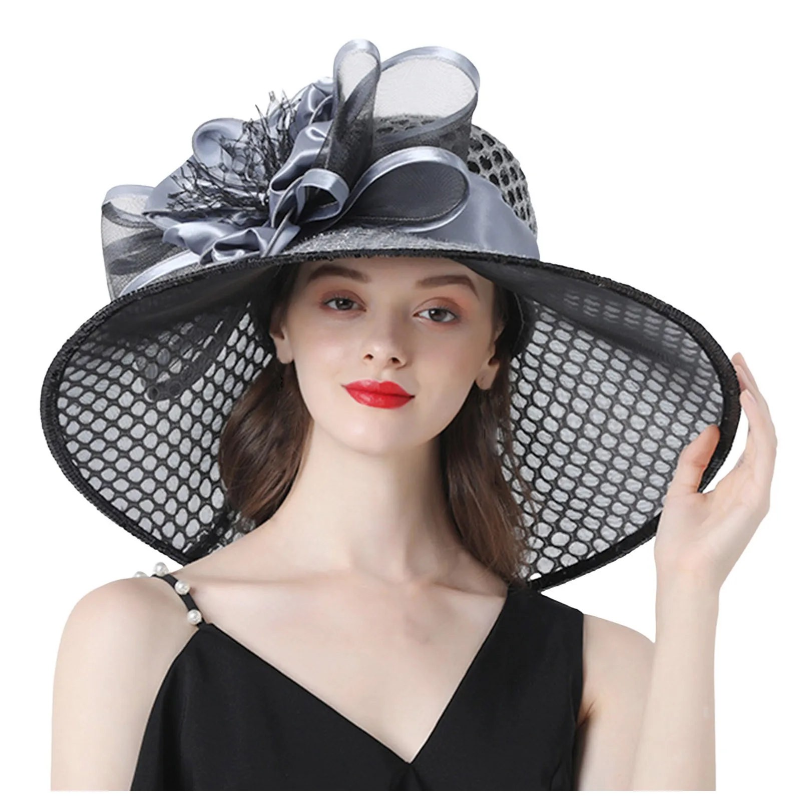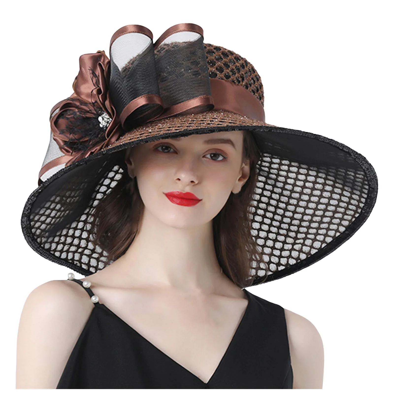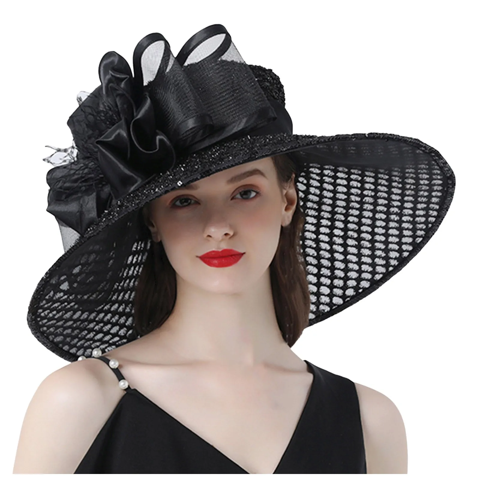 Women Church Hat Wide Brim Sun Hats For Wedding Tea Party Fascinator Hat Use