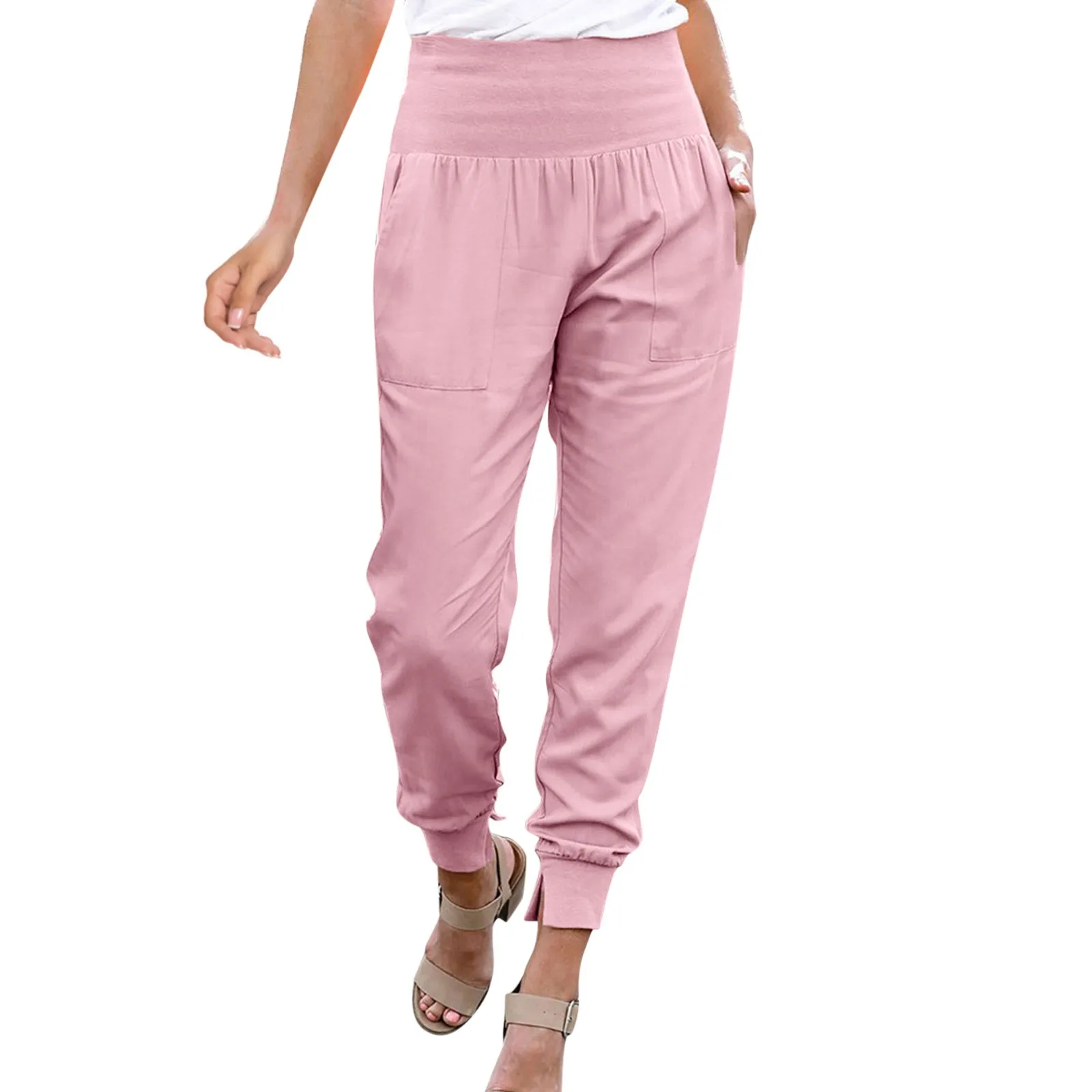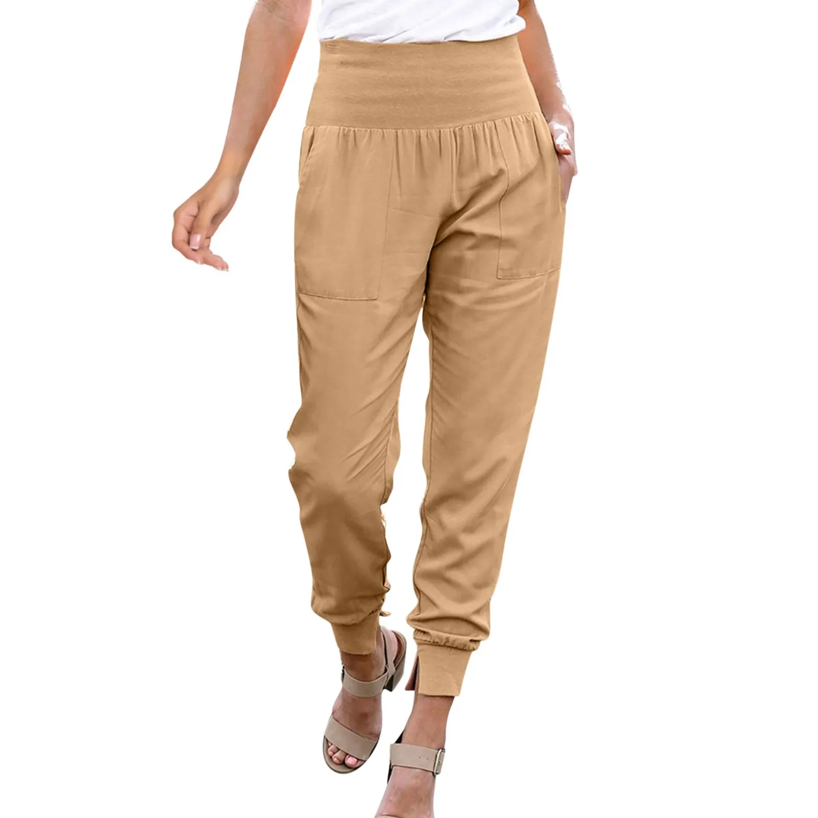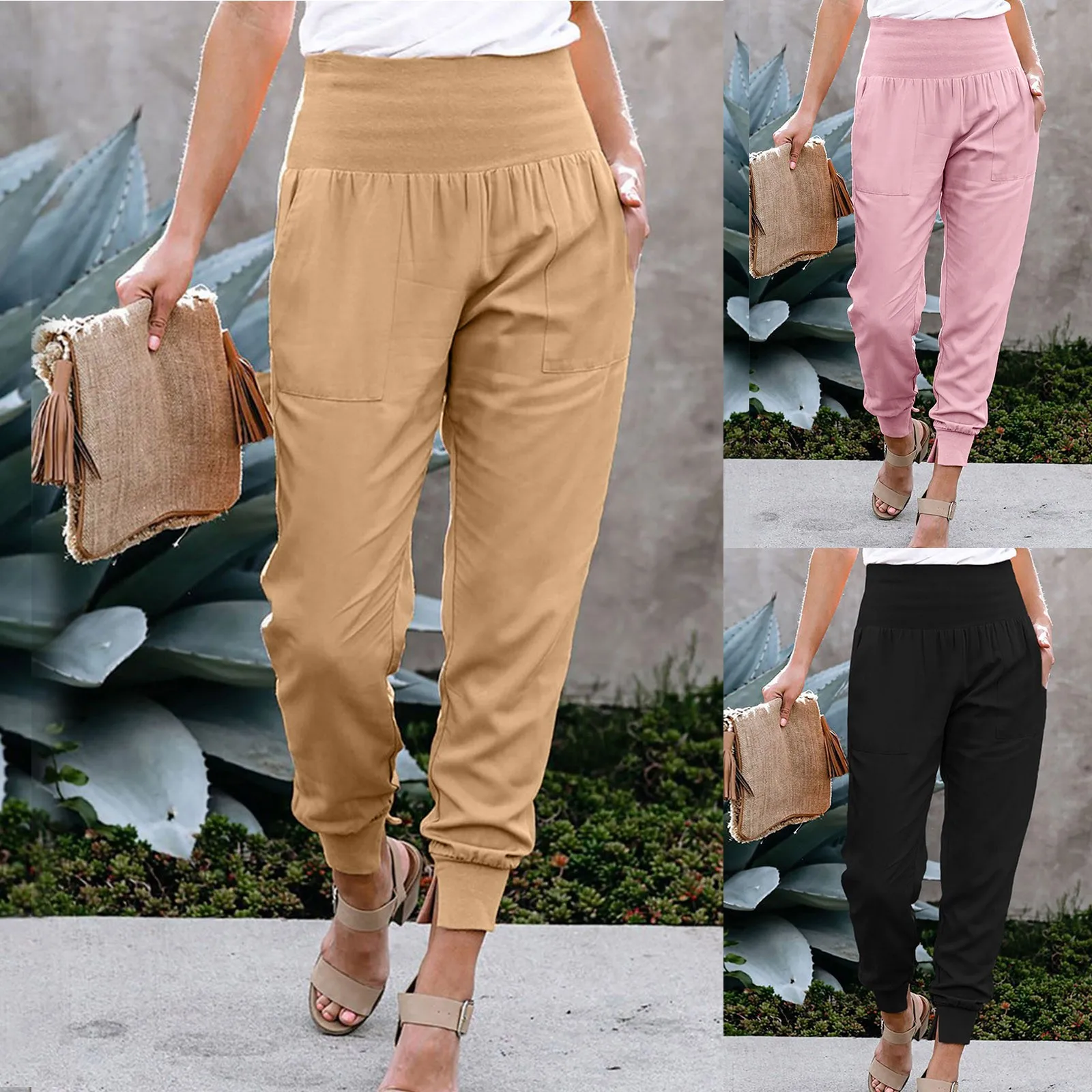 Women’s High Waist Casual Elegant Pants Stretch Leggings Jogging Bottoms Fabric Trousers With Pockets
