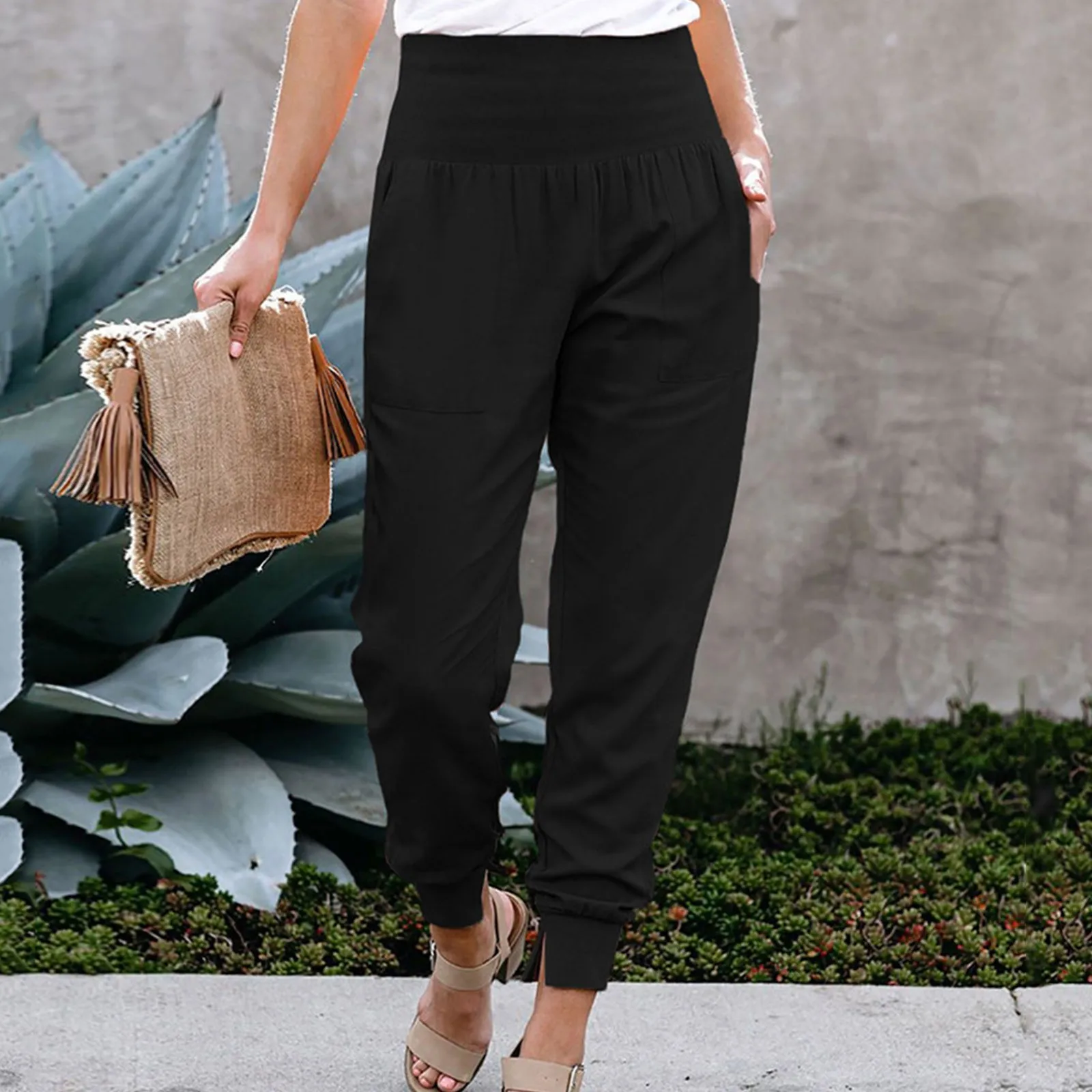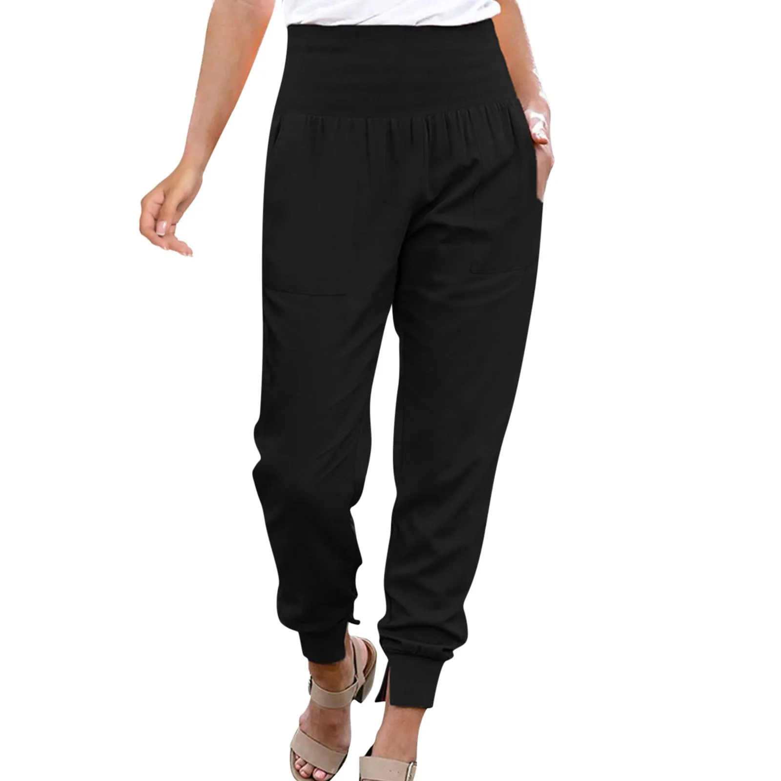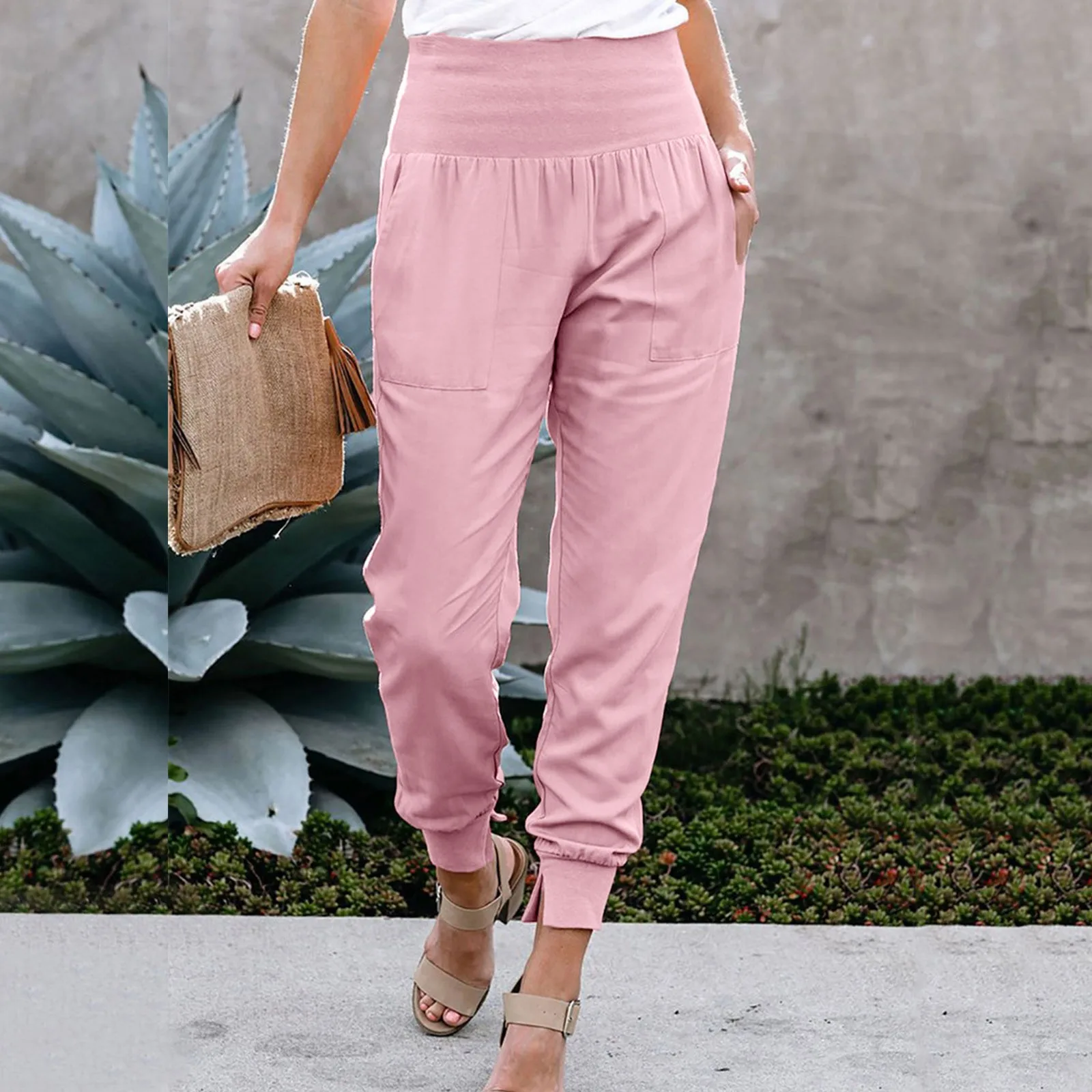 Women’s High Waist Casual Elegant Pants Stretch Leggings Jogging Bottoms Fabric Trousers With Pockets
