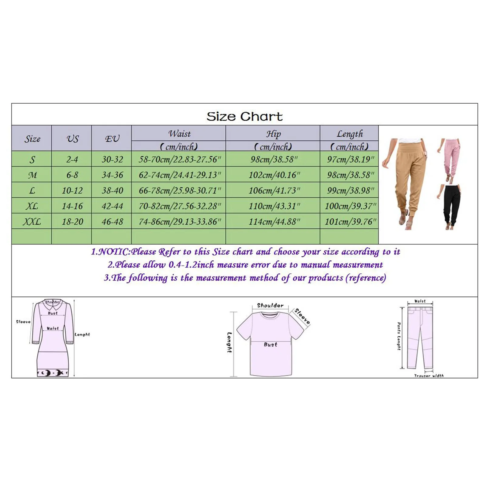 Size:S US:2-4 EU:30-32 Waist:58-70cm/22.83-27.56” Hip:98cm/38.58” Length:97cm/38.19”