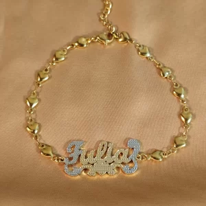 Custom Iced Name Bracelet - Stainless Steel Diamond Nameplate Jewelry for Women