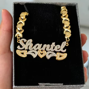 Custom Name Necklace XOXO Chain Stainless Steel Pendant 3D Double Color Nameplate Necklace With Diamond Jewelry Anniversary Gift