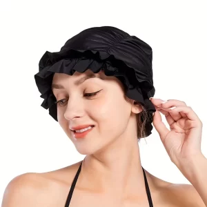 Women's Swimming Hat– Ruffled Edge, Nylon Fabric, Elastic Fit, Ear Protection