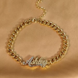 Double-Plated Name Anklet – Custom Initials, Heart, Cuban Chain, Birthday Gift